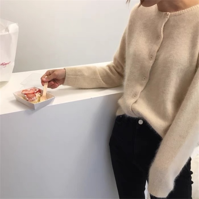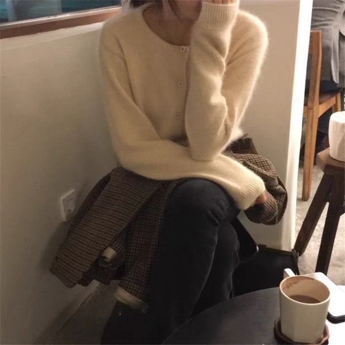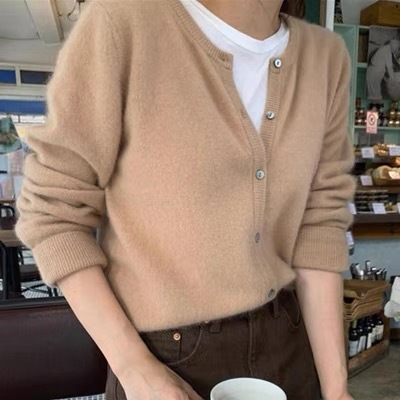 2025秋冬韓国東大門産カシミヤカーディガン レディース ラウンドネックセーター ウール厚手ニットジャケット 韓国風