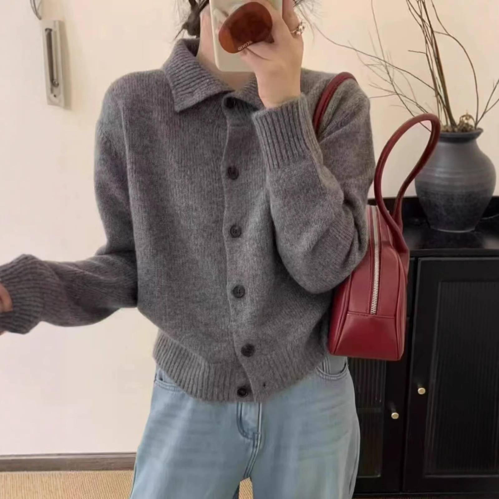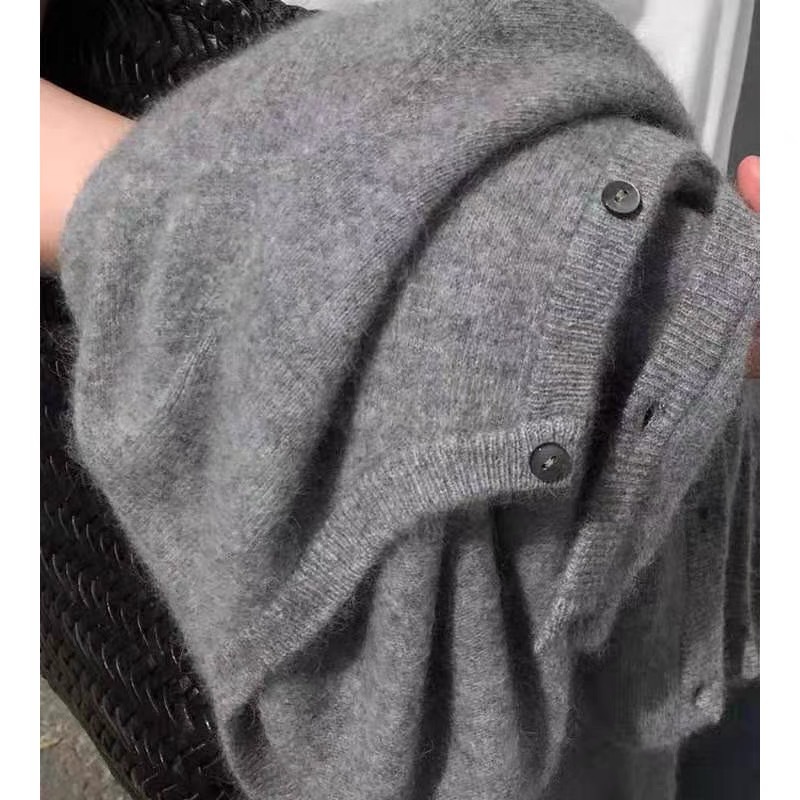 25デザインセンスのある秋冬グレーウールラウンドネックカーディガンレディースカシミヤニット万能長袖セーターゆったりスタイルトップス