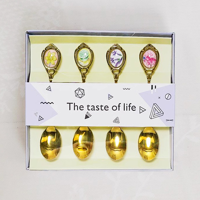 洗練された高颜値ステンレスデザート金スプーンコーヒー攪拌スプーン果物フォーク甘いフォークギフトボックスの組み合わせ