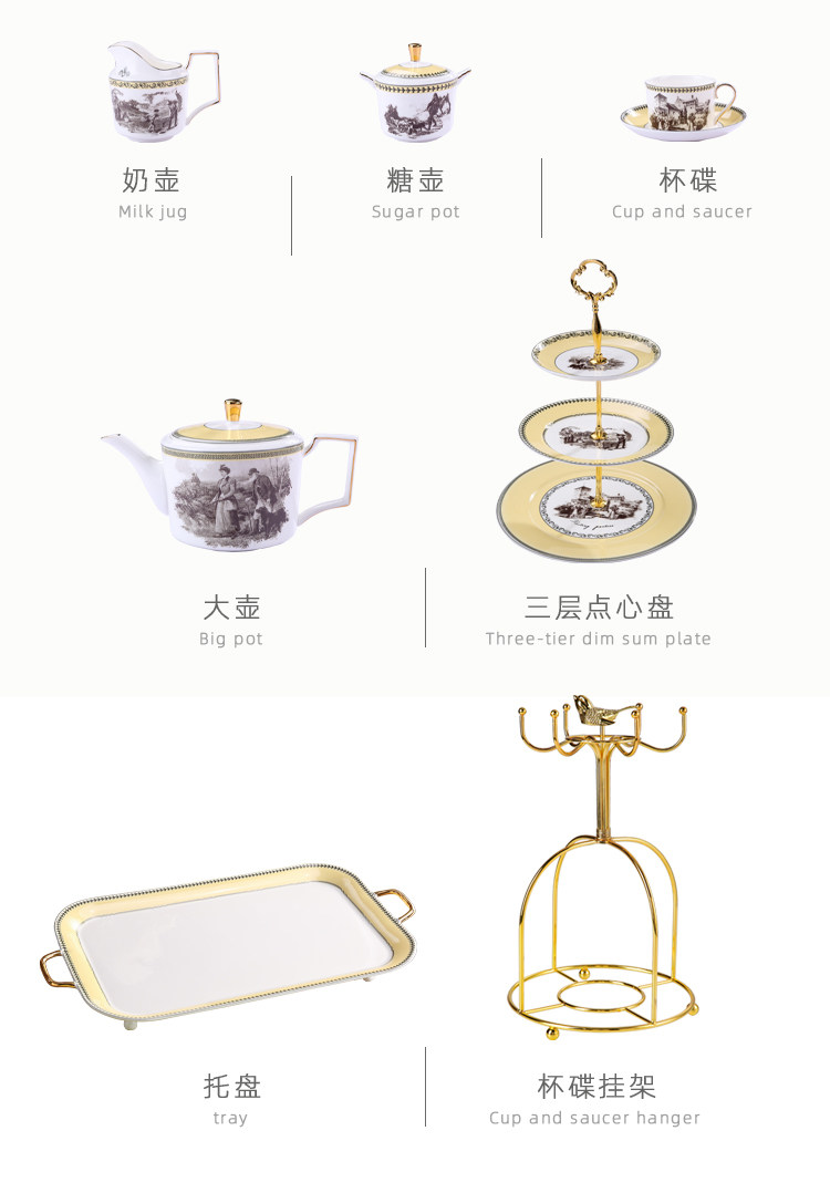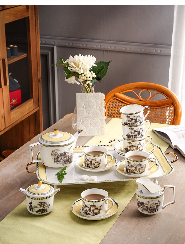 高級感ヨーロッパ風骨磁器コーヒーカップ食器セット創意リビングルームの午後のお茶カップのティーポットセット