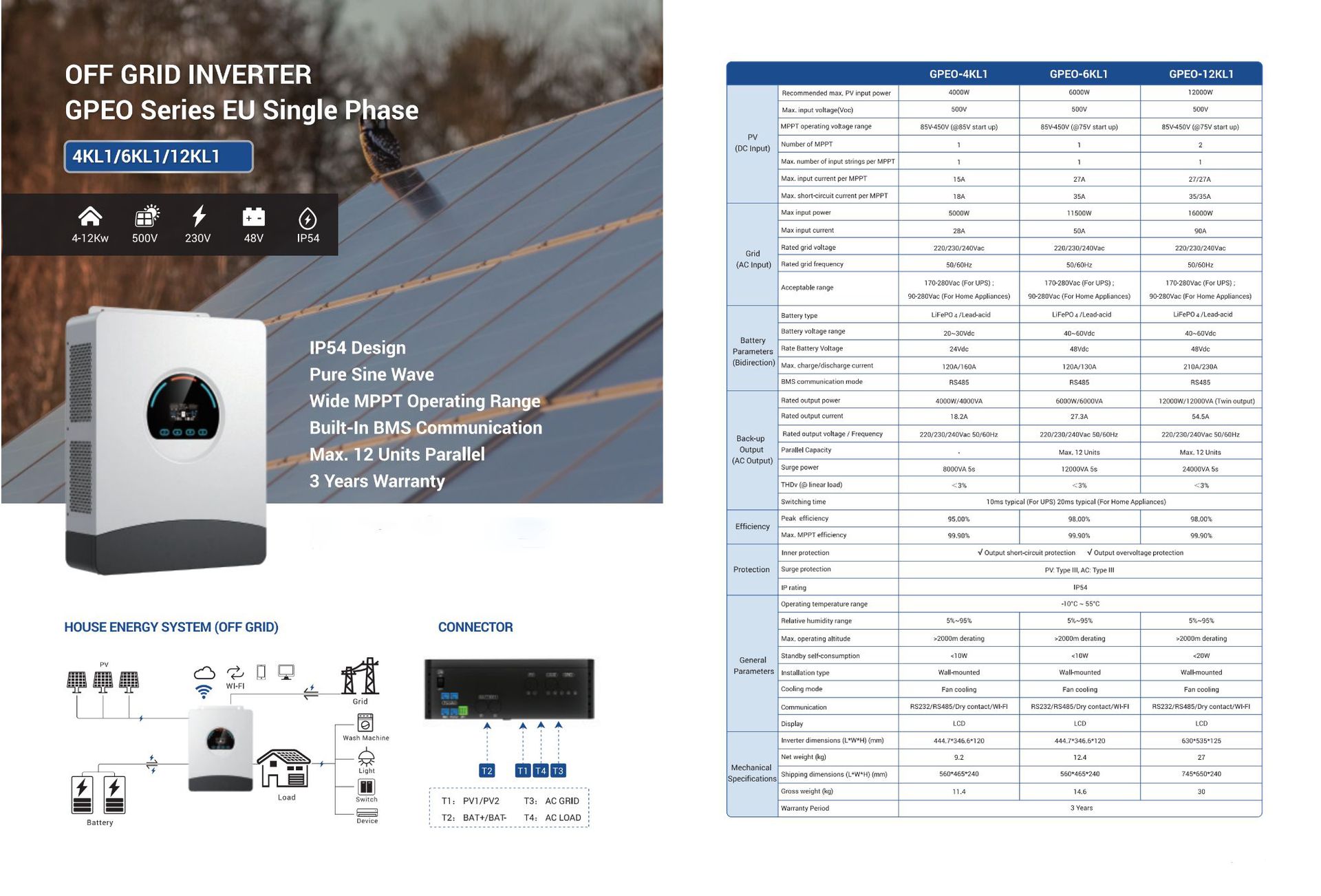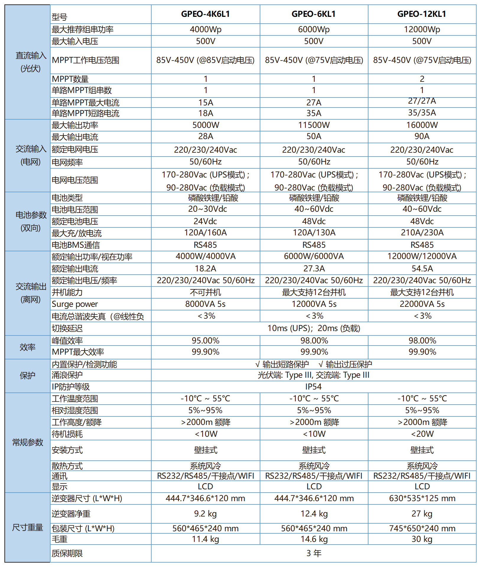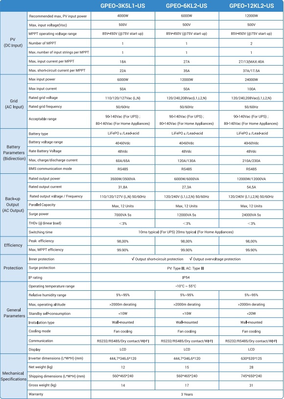 6KW12KW太陽光発電インバーターIP54並列型太陽光発電インバーター48Vオフグリッド蓄電逆制御一体機