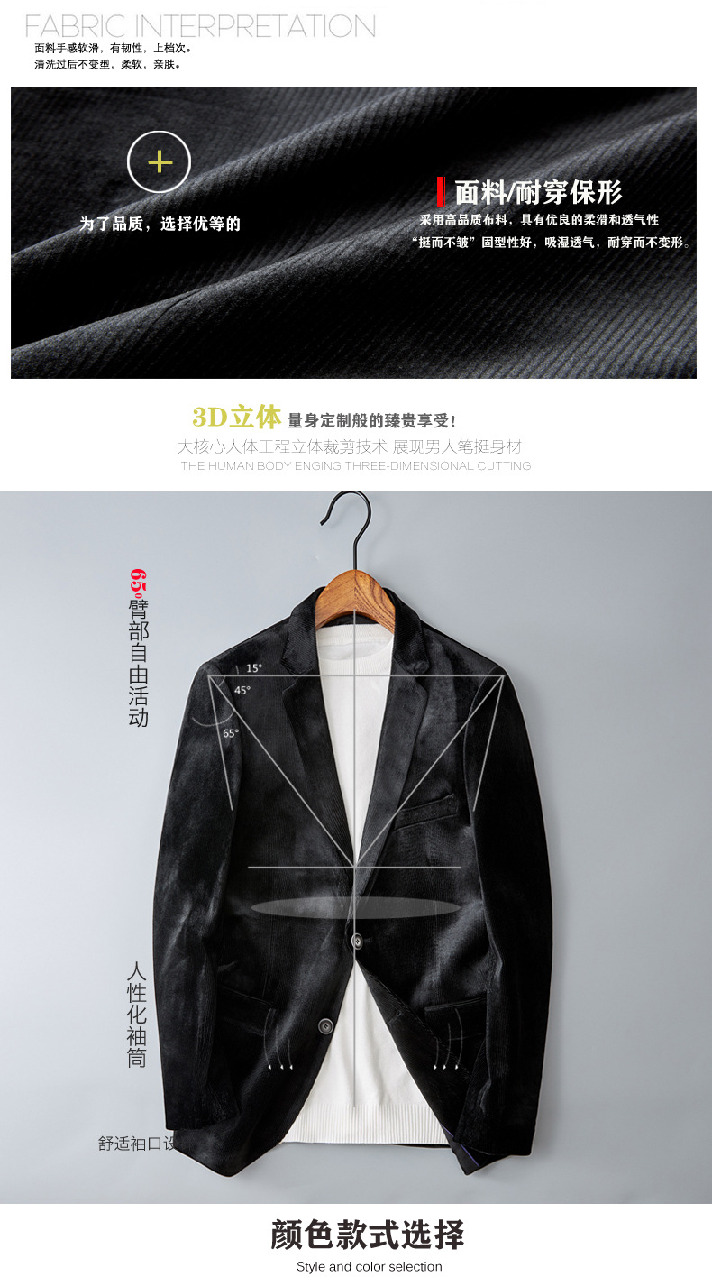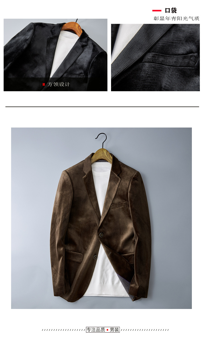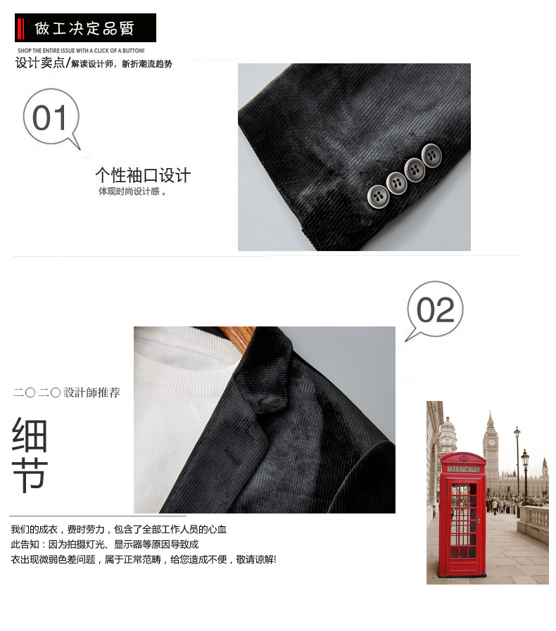 密文代発秋装新型男性コーデュロイスーツの厚手の品質が粗いストライプの質感があります。