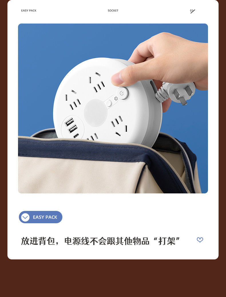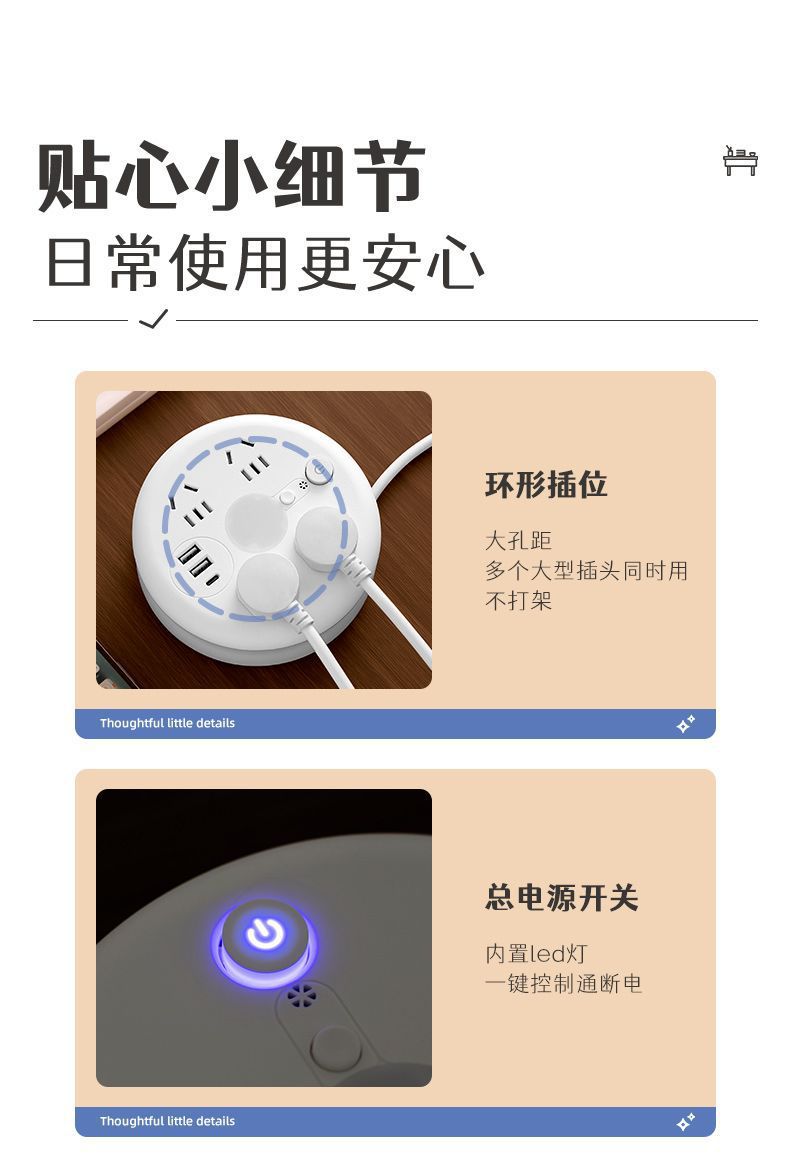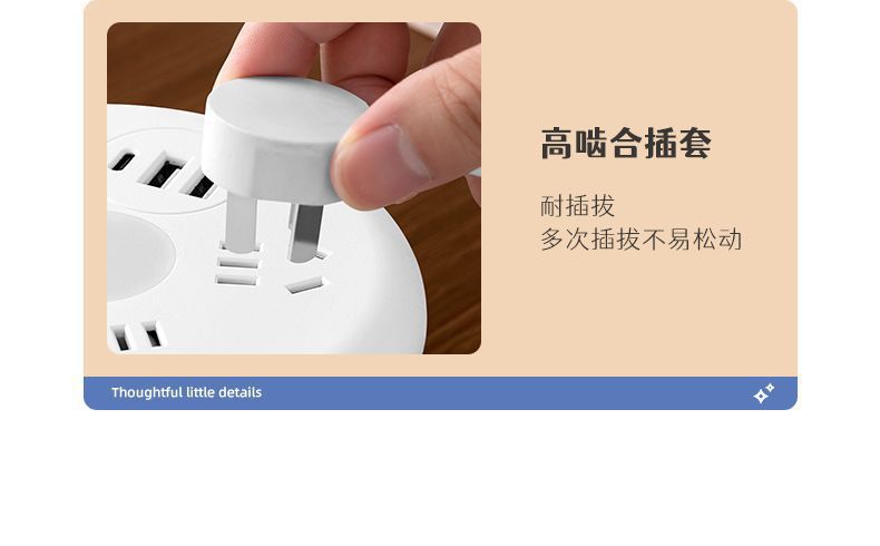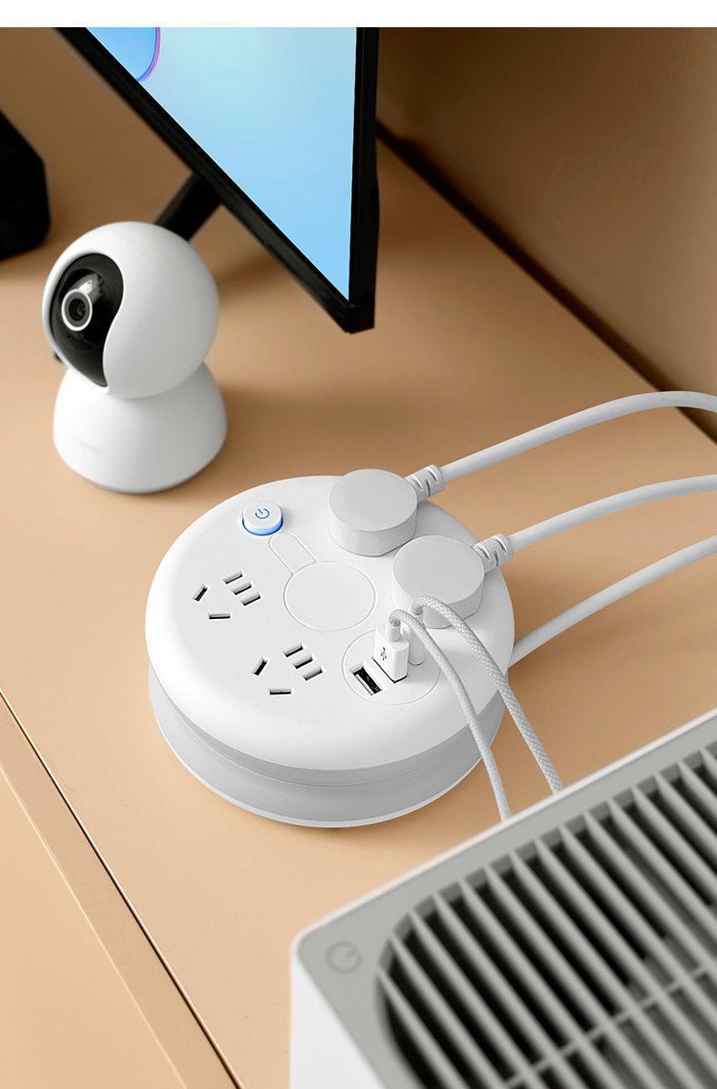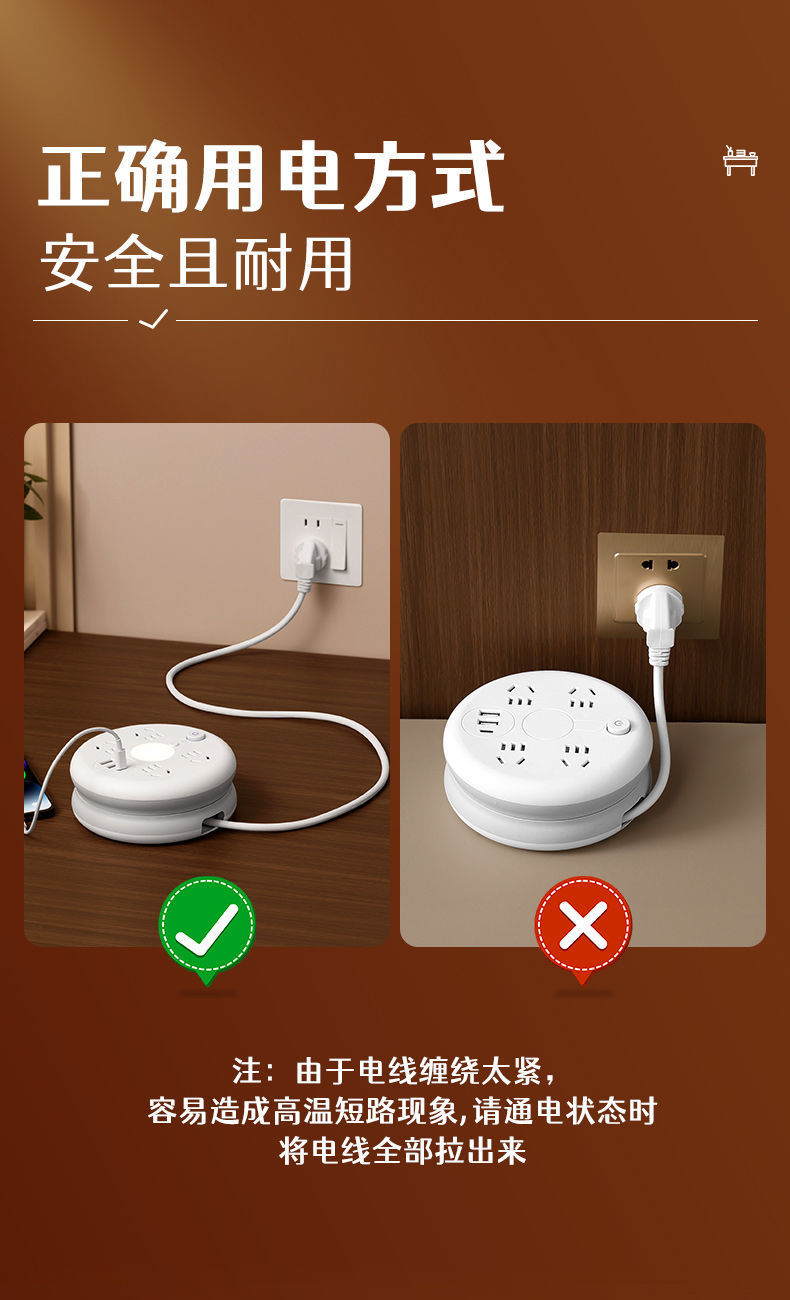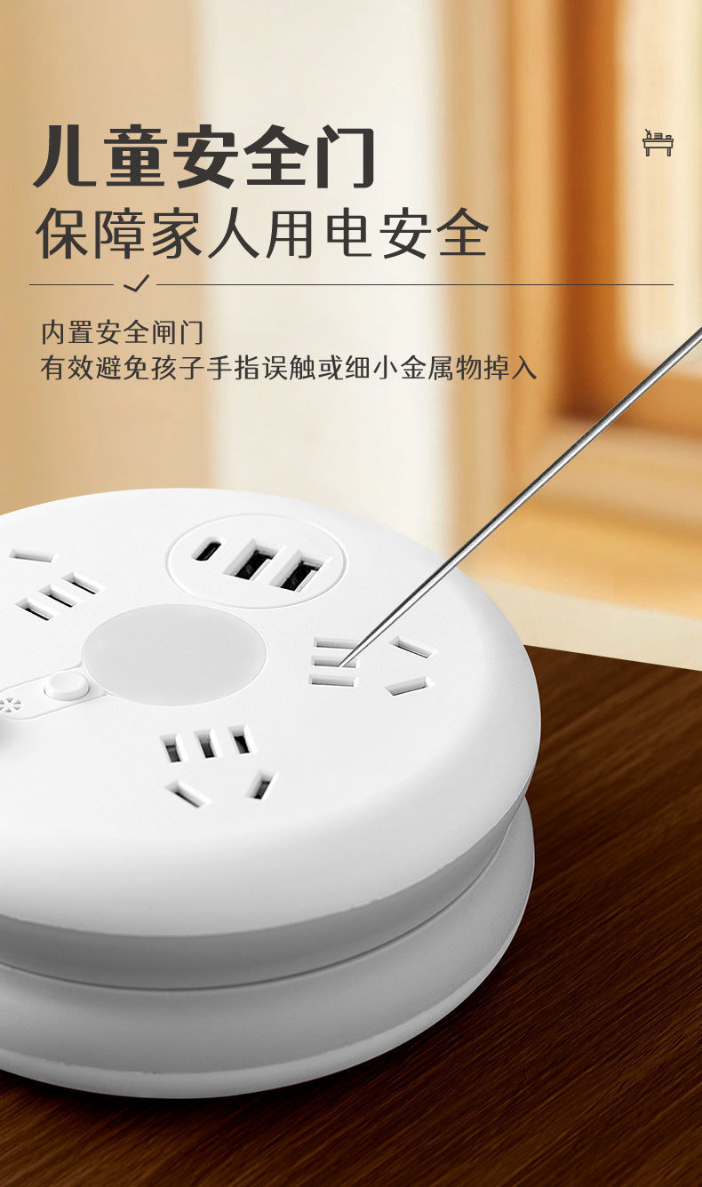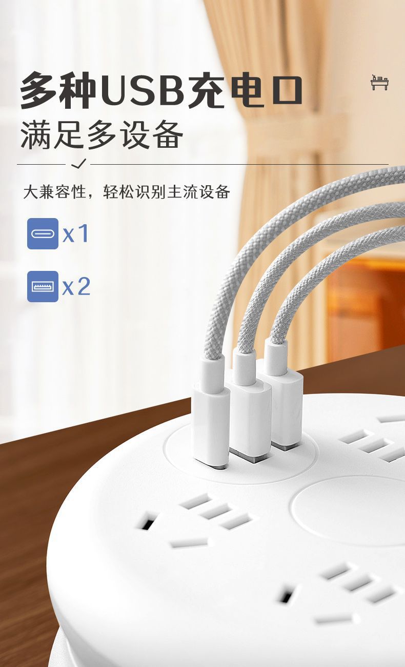 圆形可收纳伸缩排插usb接线板家用宿舍转换器插座带夜灯排插线板