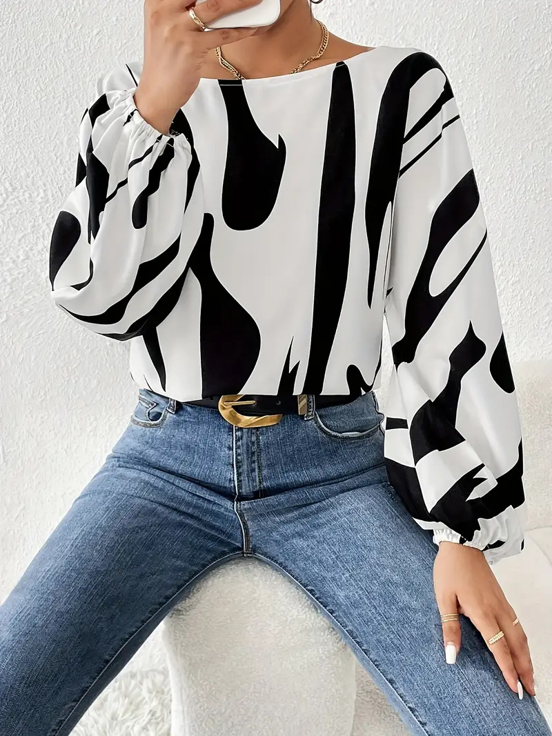 ヨーロッパとアメリカのクロスボーダー Amazon AliExpress 2025 春夏新作クラシックヒョウ柄 V ネックランタンスリーブ長袖シャツ