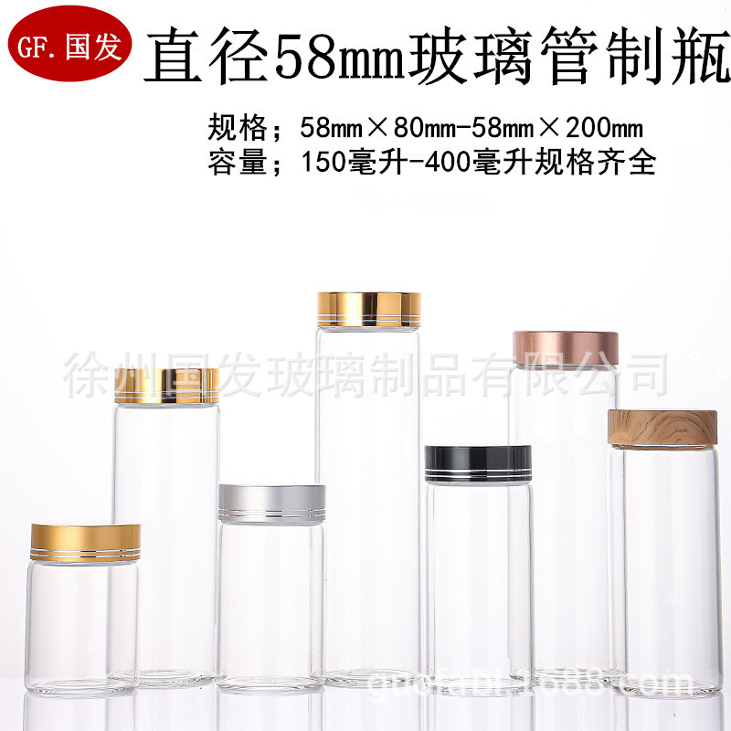 直径58mm高ホウ素シリコン密封ガラス瓶高級手串文遊び沈香収納瓶カプセル錠剤包装瓶
