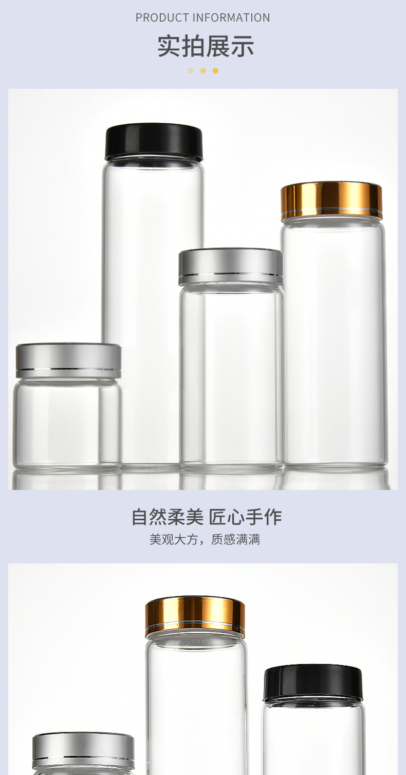47mm酸化アルミニウムキャップパイプ制ボトルチベット紅花分注ボトル虫草花茶沈香猿魁包装高ホウ素シリコンガラス