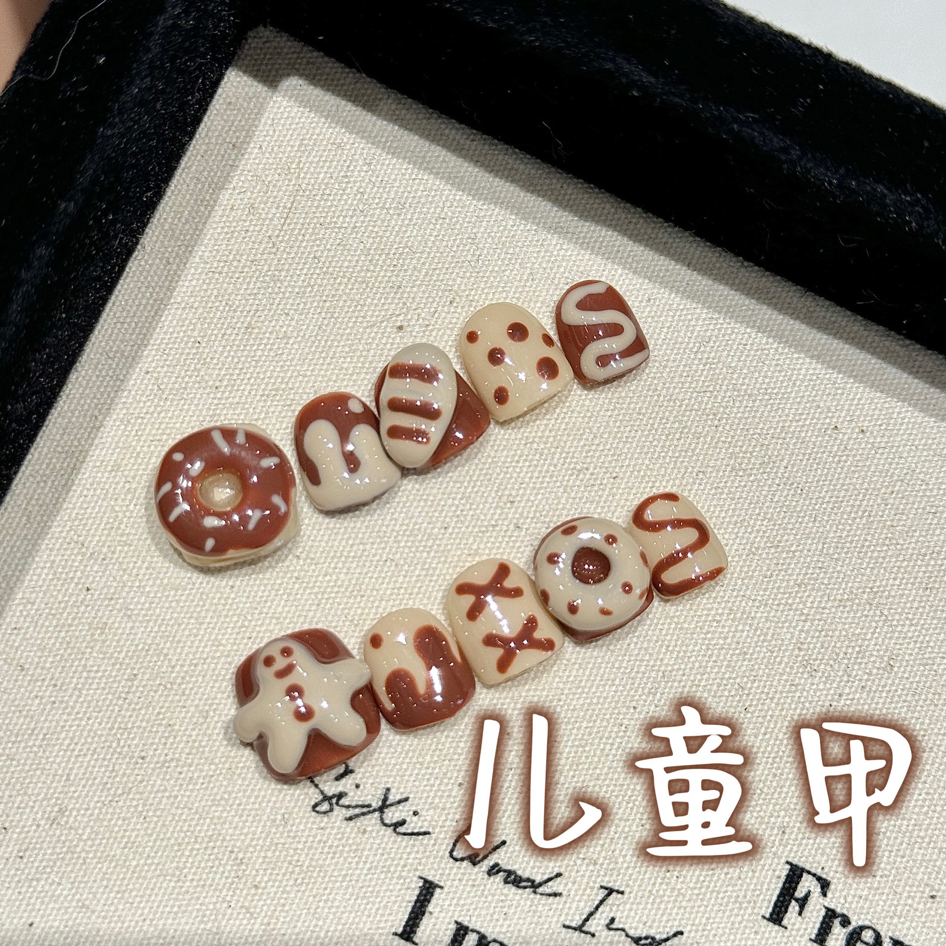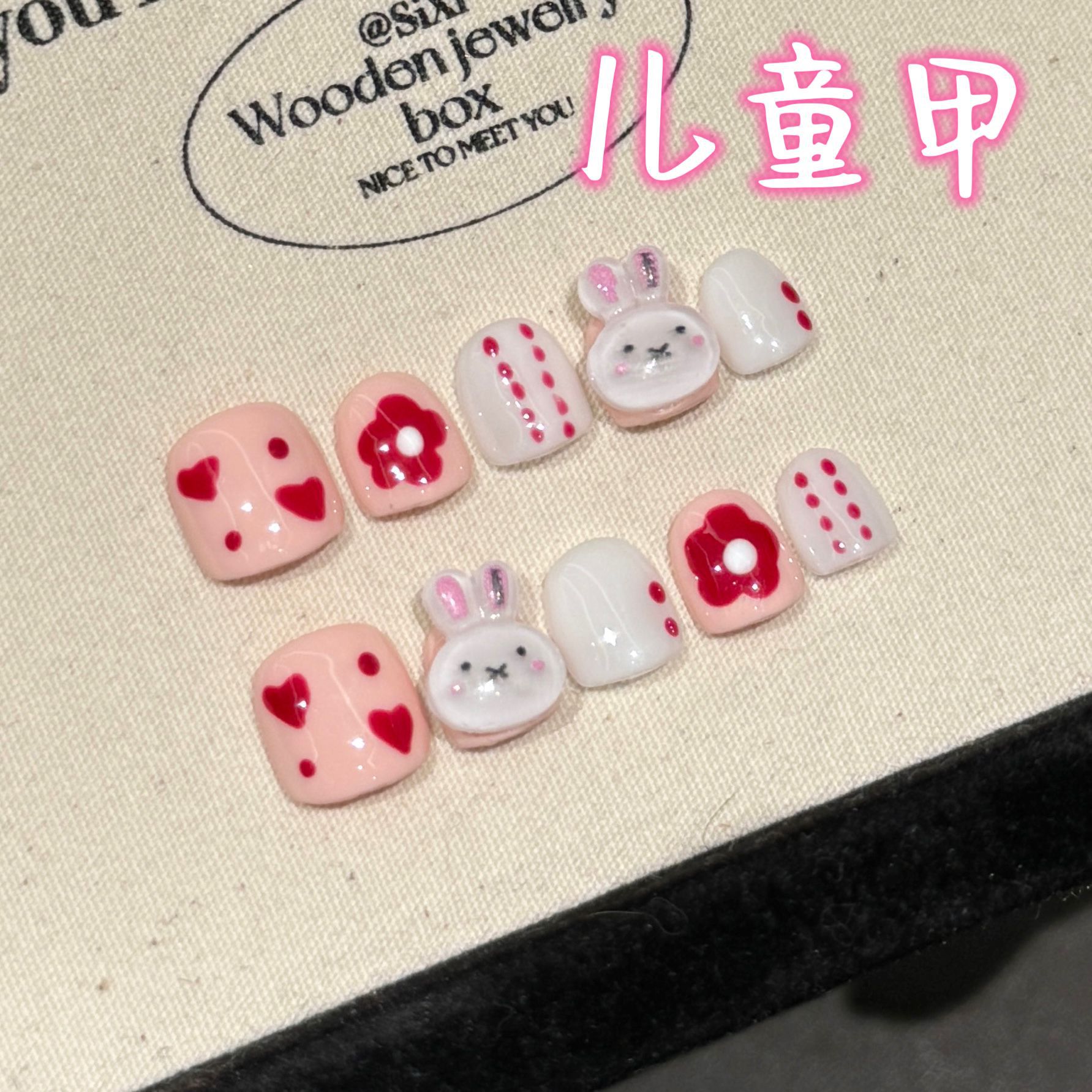 艺禾原创3-10岁手绘卡通儿童穿戴甲安全无毒可爱萌趣短款易贴美甲