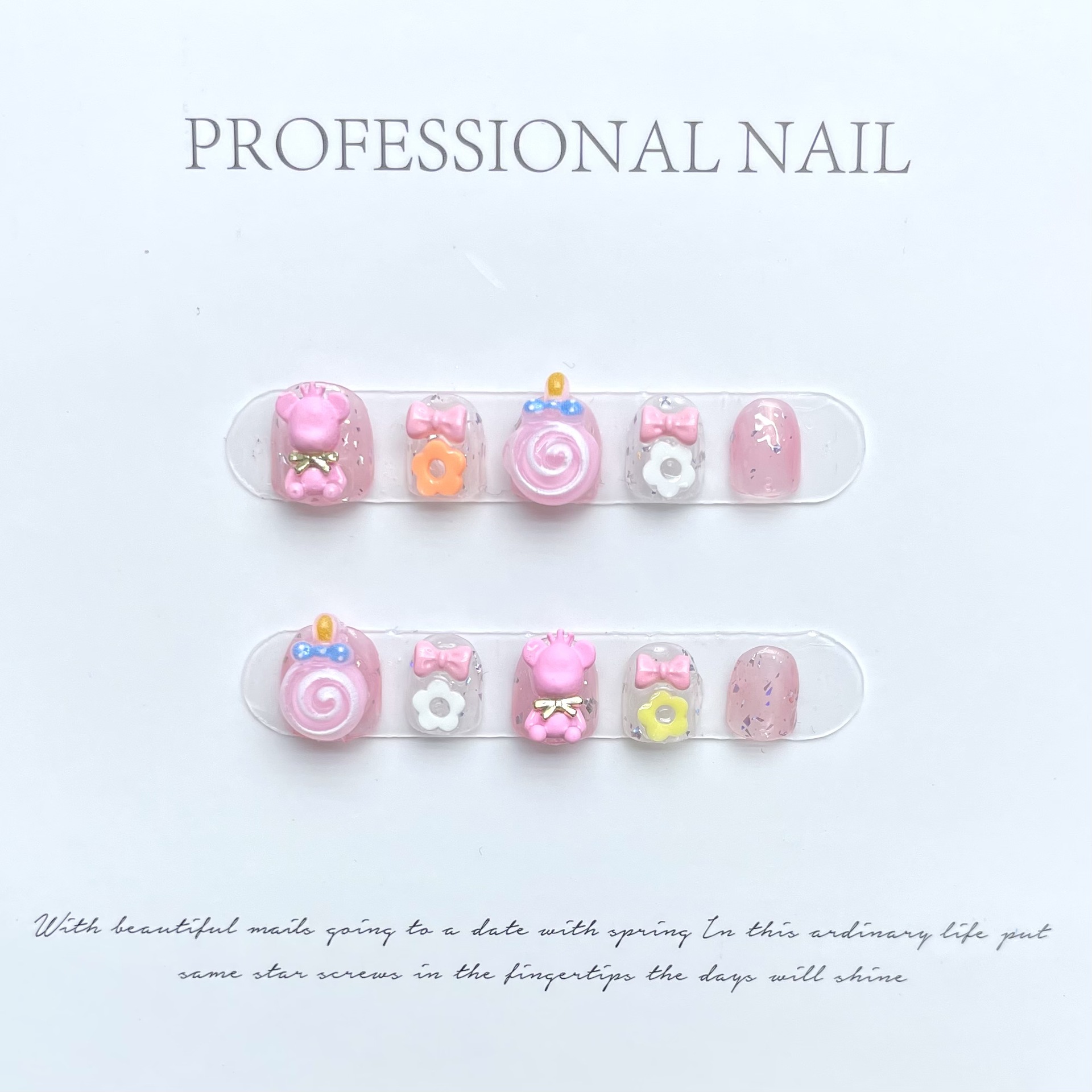 艺禾原创【萌趣团子】卡通儿童穿戴甲安全无毒软萌可爱纯手工美甲