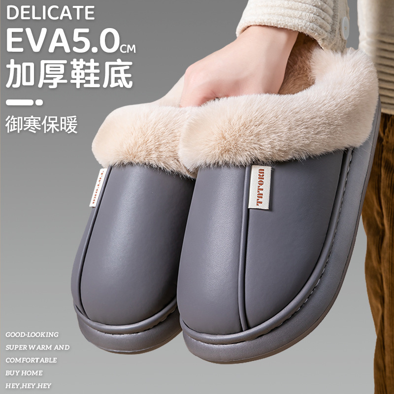 Pu防水綿スリッパ女性家庭綿靴室内滑り止め保温は耐摩耗性の厚い底の月子靴男性卸売りを着ることができる