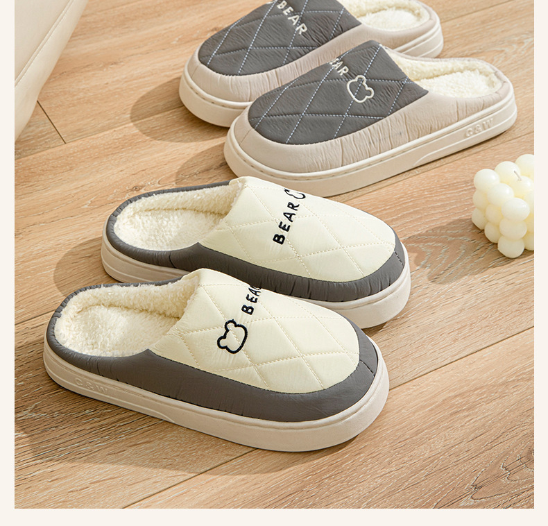 防水綿スリッパ冬卸売り室内家庭防水滑り止めカップル保温ダウン綿引き女性卸売り冬