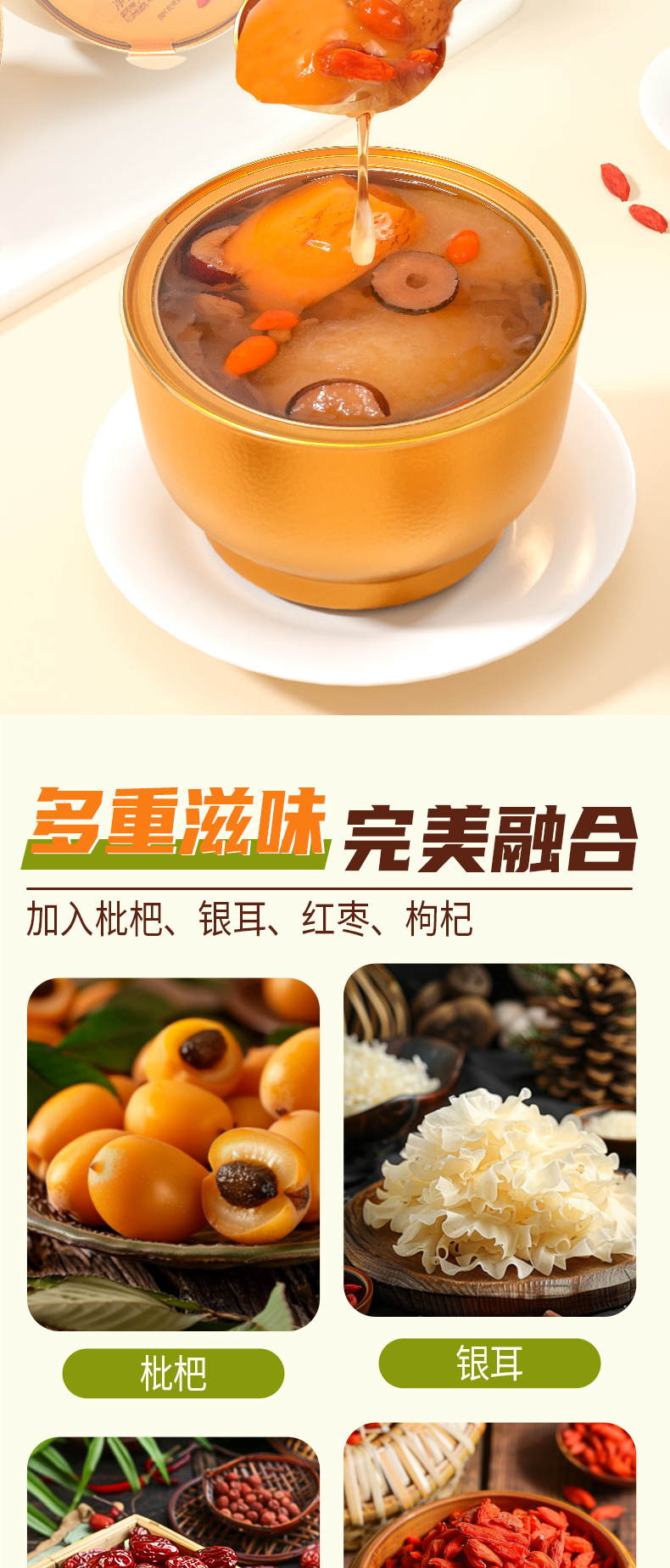 原材料と原材料 飲料水、ソルビン、トレメラ、ビワ、氷砂糖、ナツメヤシ、クコ