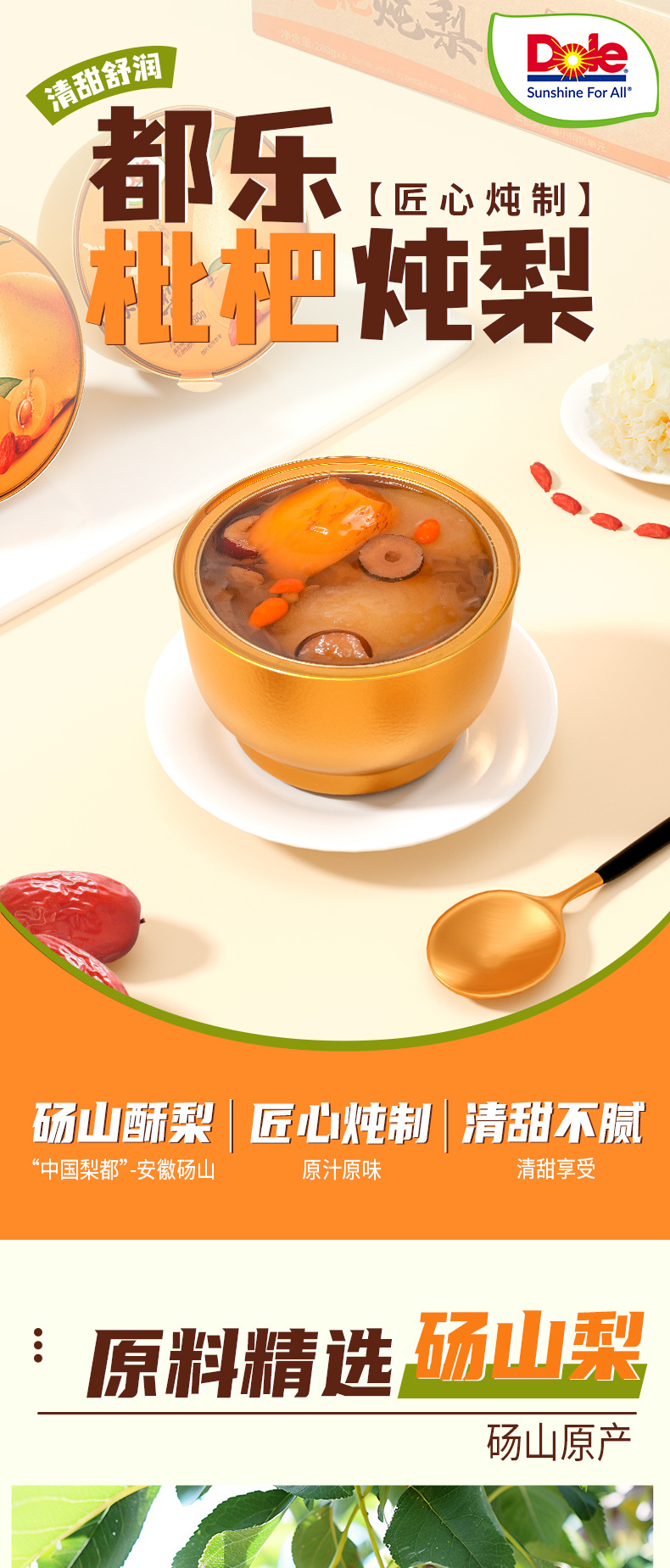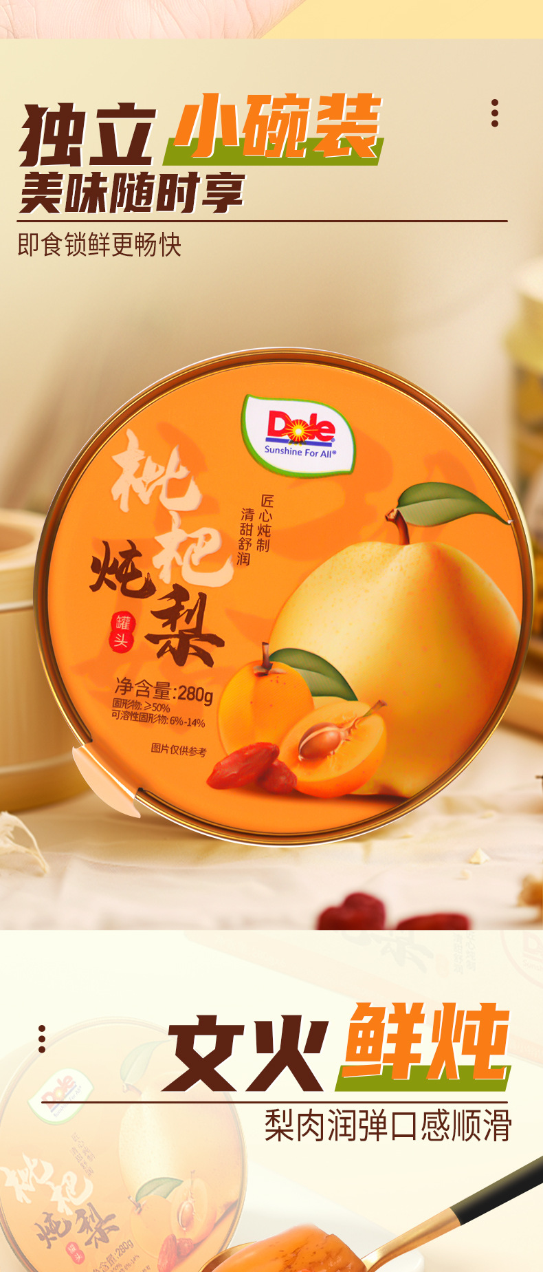 DOLE都楽銀耳/ビワ煮込み梨280g小碗氷砂糖山メレンゲ果物缶詰カジュアルスナック