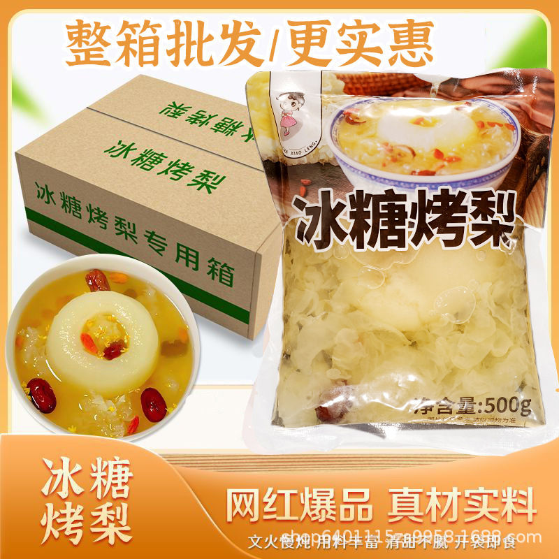 氷砂糖焼き梨のフルケース卸売り500g袋入りの商用飲食店が袋を広げてインスタント食品ネット赤煮込み梨のブランドをカスタマイズした