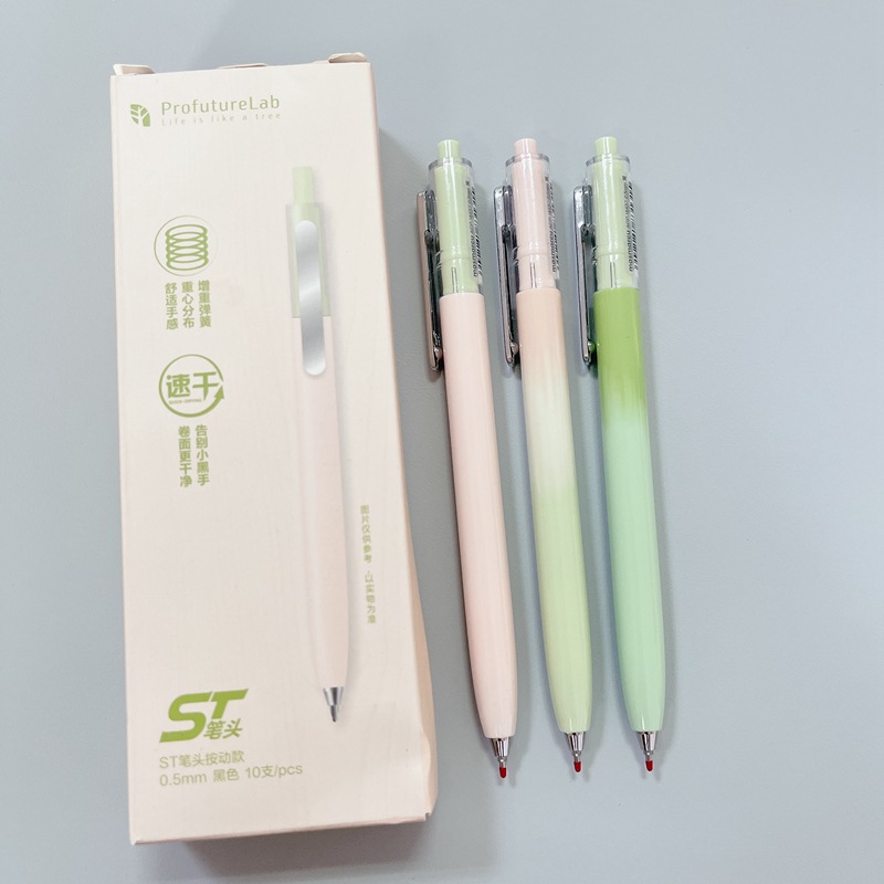 朝の光の文房具の弾頭は中性ペンを押します。