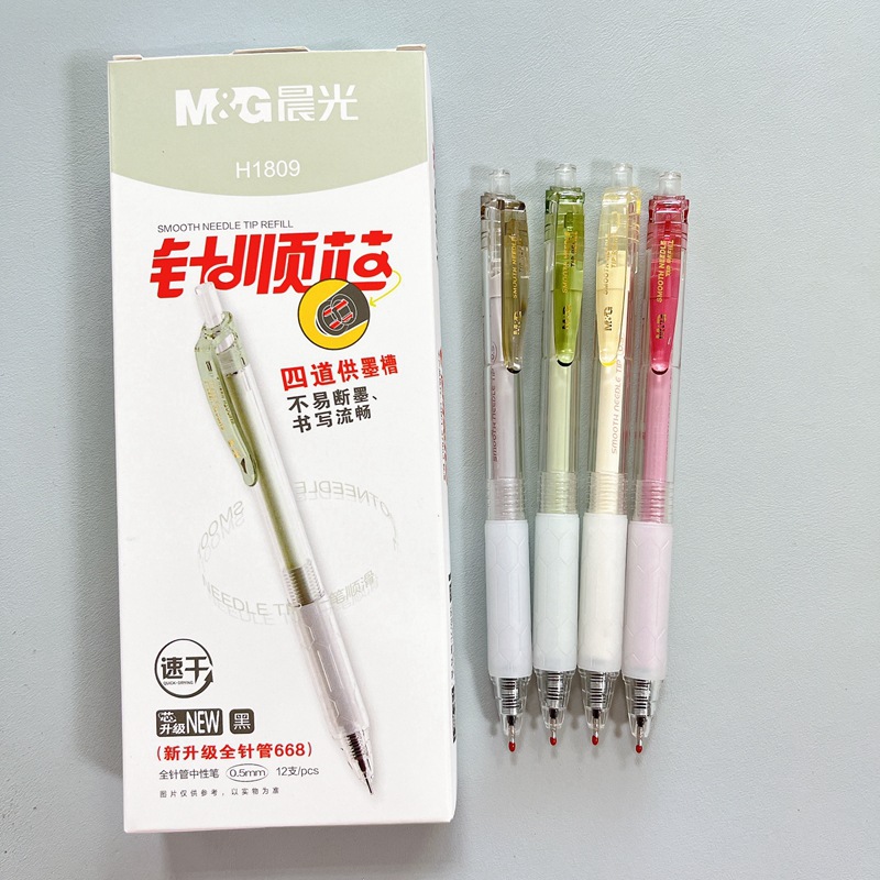 晨光针顺芯中性笔AGPH1809全针管0.5速干学生考试办公按动中性笔