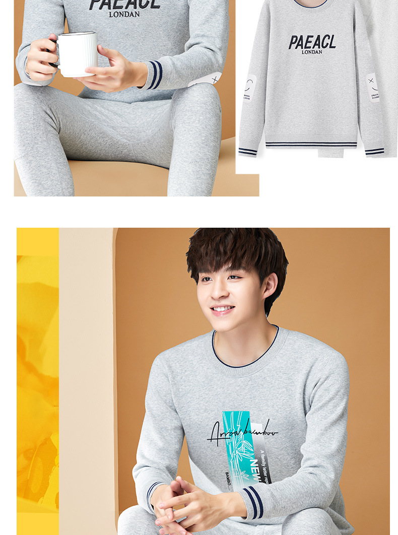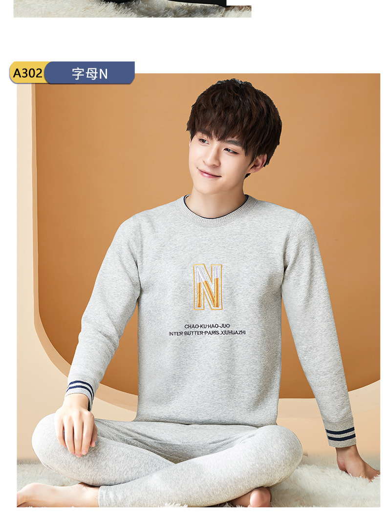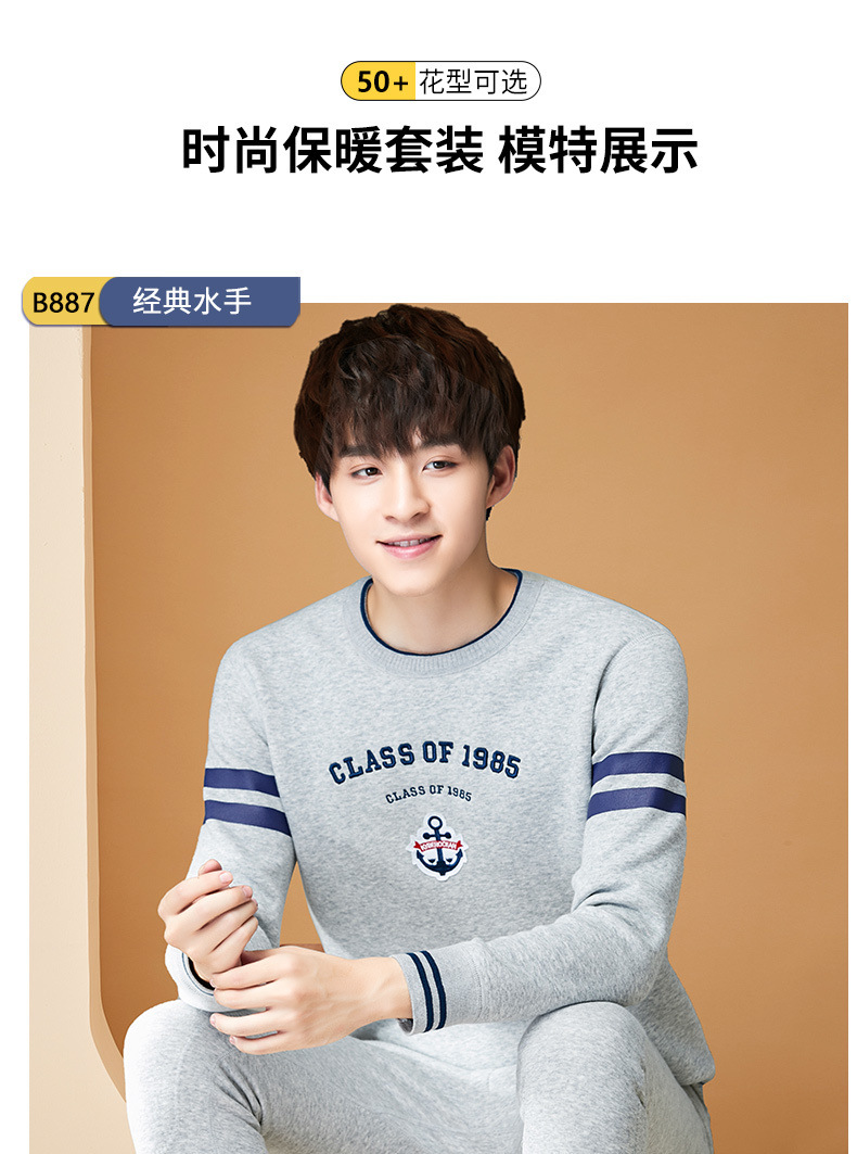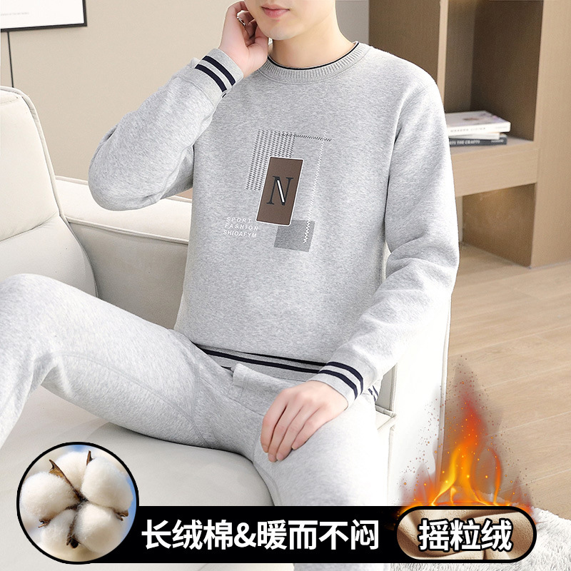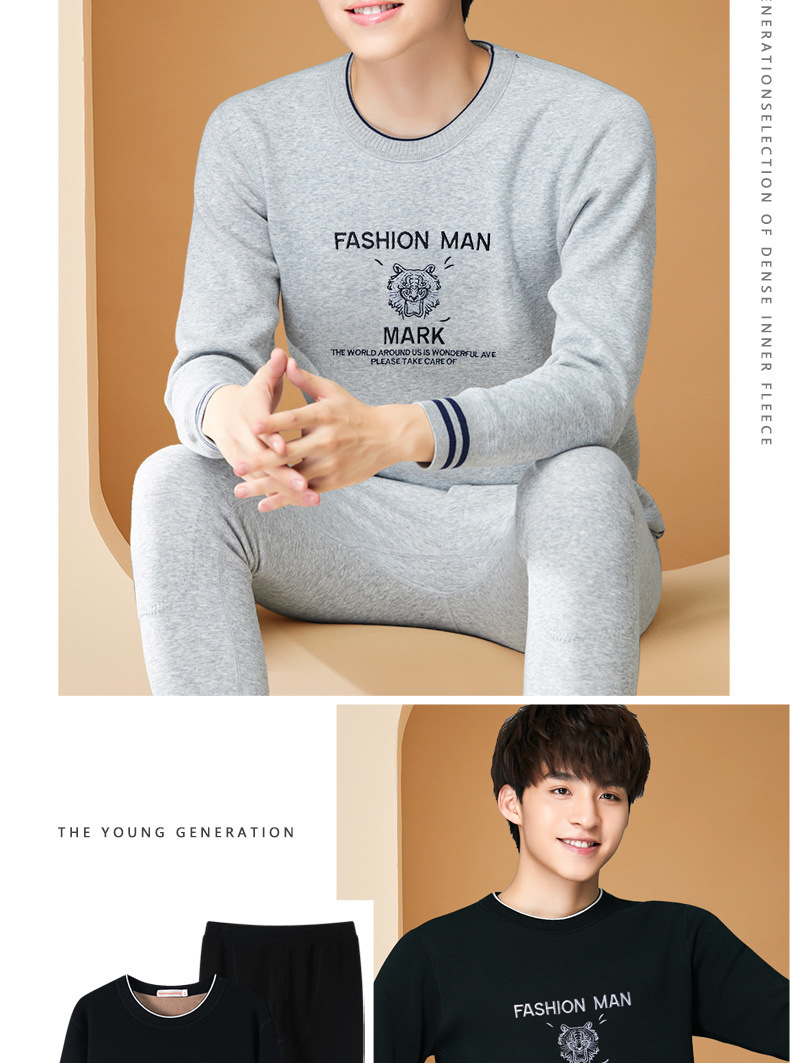 メンズ丸首とベルベットの厚い長袖保温下着セット潮青少年男性秋衣秋ズボン修身セット
