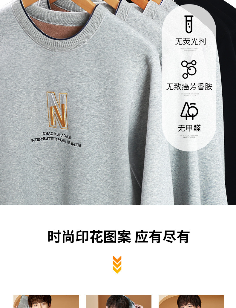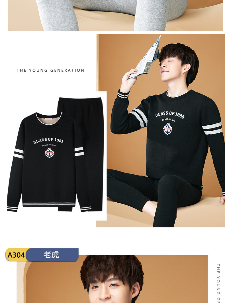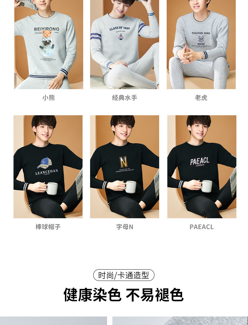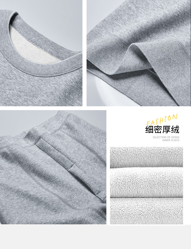 メンズ丸首とベルベットの厚い長袖保温下着セット潮青少年男性秋衣秋ズボン修身セット
