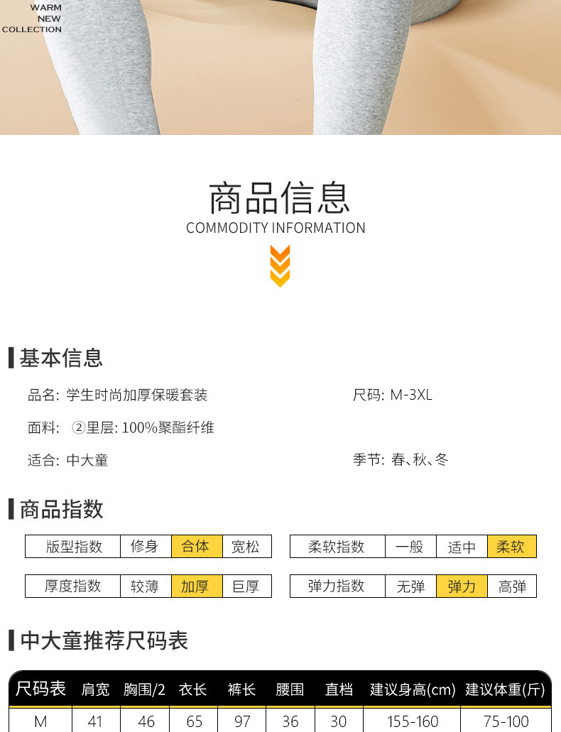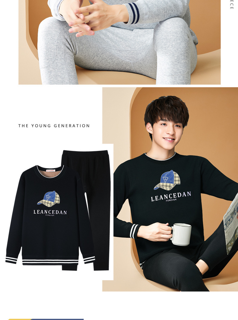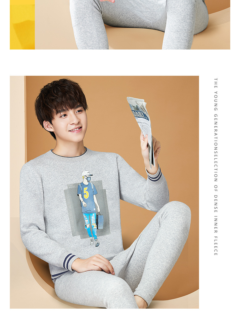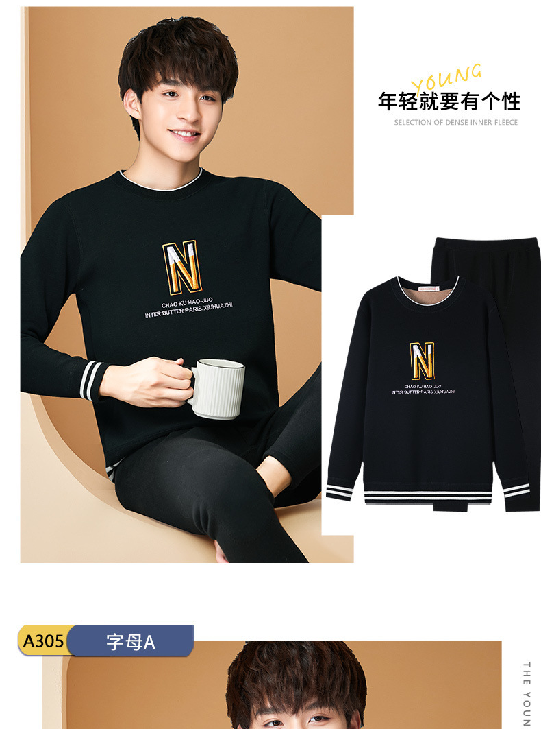 青少年保温下着男子児童学生のベルベット厚手セット綿セーター秋冬男性秋衣秋ズボン