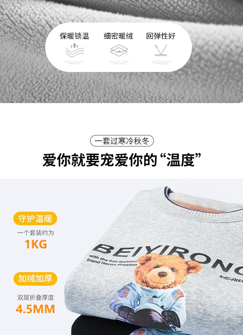 德绒保暖内衣套装男冬季防寒青少年学生男款加绒加厚男士秋衣秋裤