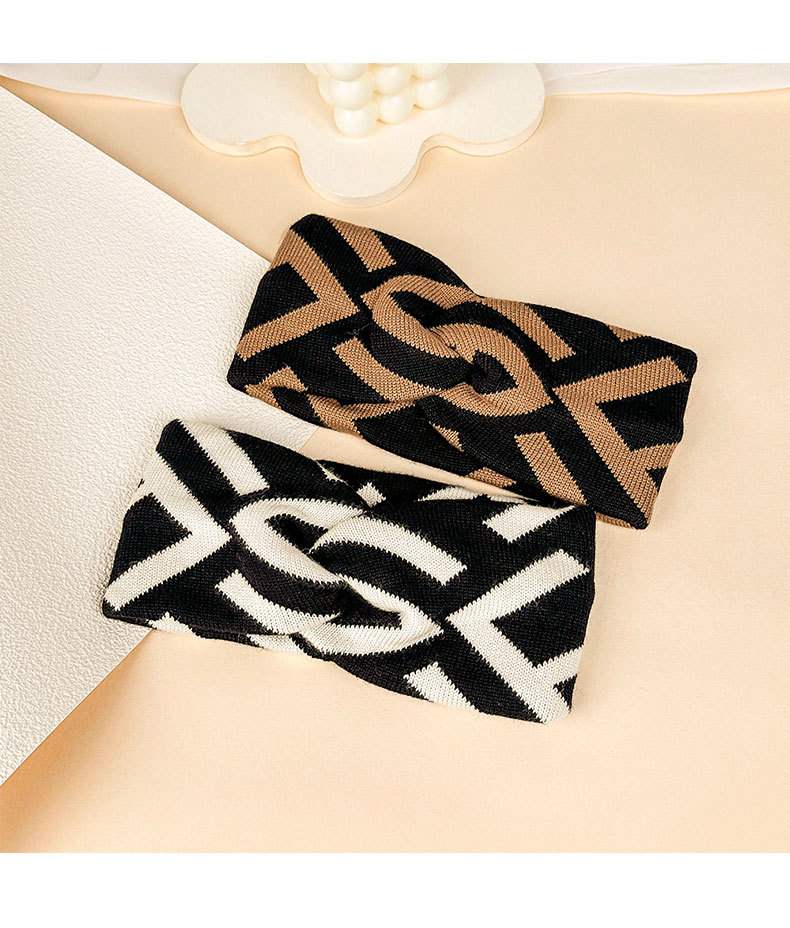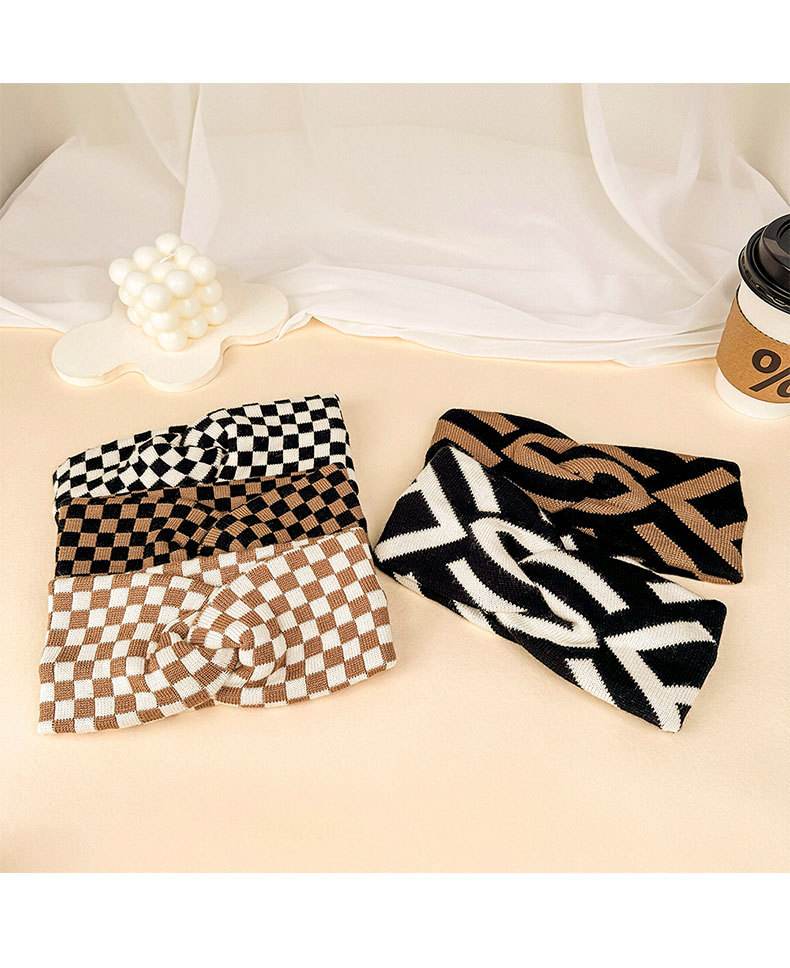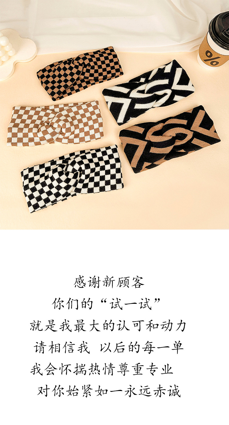 文芸レトロ毛糸カチューシャ女性白黒棋盤格暖かいヘアバンドファッション