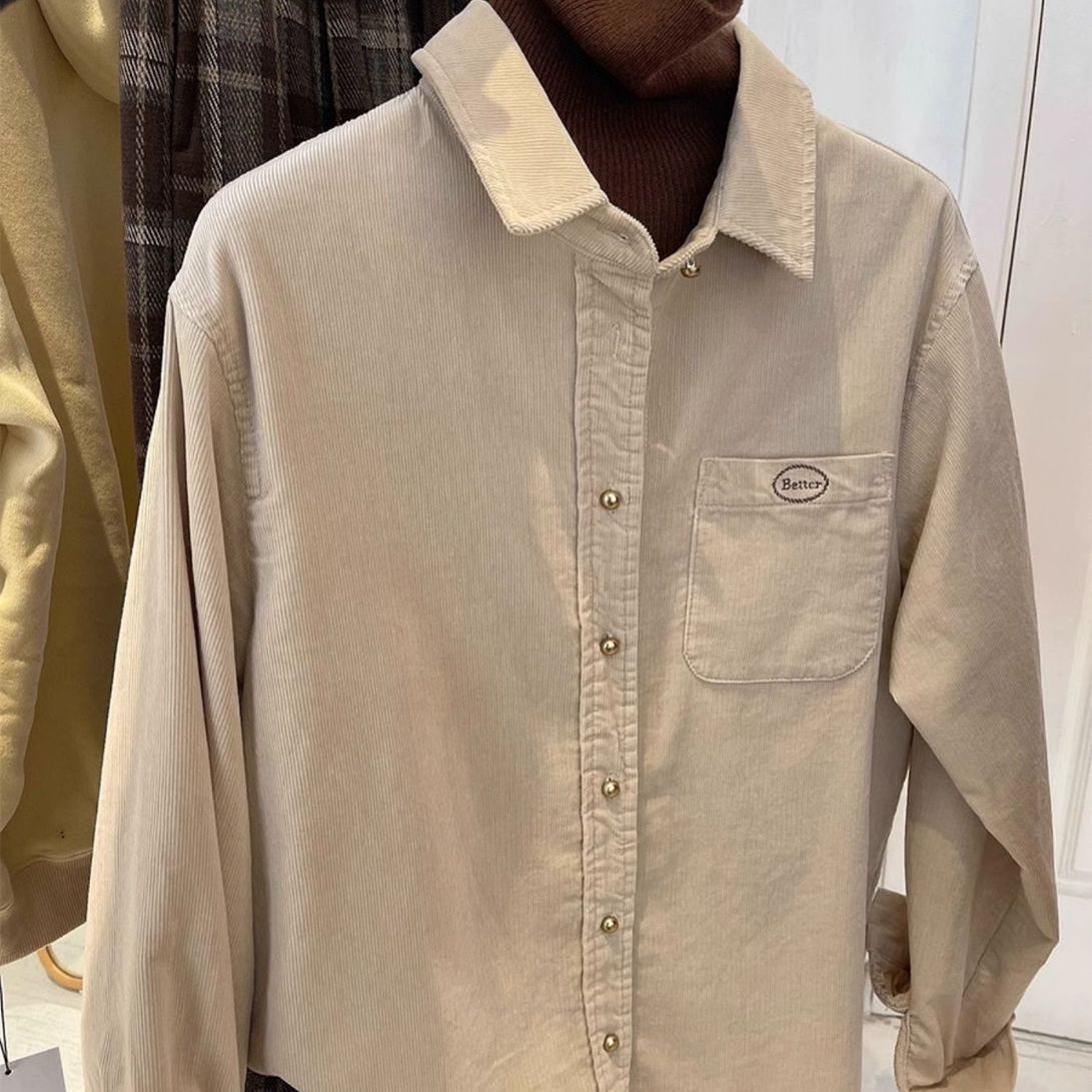 外贸磨毛衬衫外套秋冬季小个子复古衬衣法式长袖上衣灯芯绒衬衫女