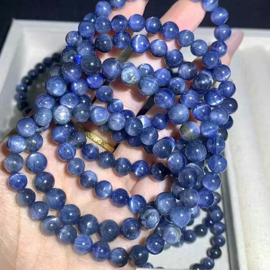 天然カイヤナイトブレスレットキャッツアイカイヤナイトブレスレット DIY アクセサリークリスタルフルブルー滑らかで繊細