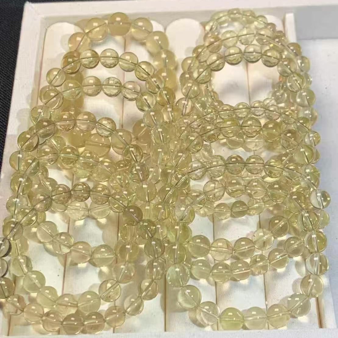 天然レモンクリスタルブレスレット、鮮やかでクリーンなクリスタル、透明なレモンシトリンブレスレット、DIYアクセサリーラウンドビーズ