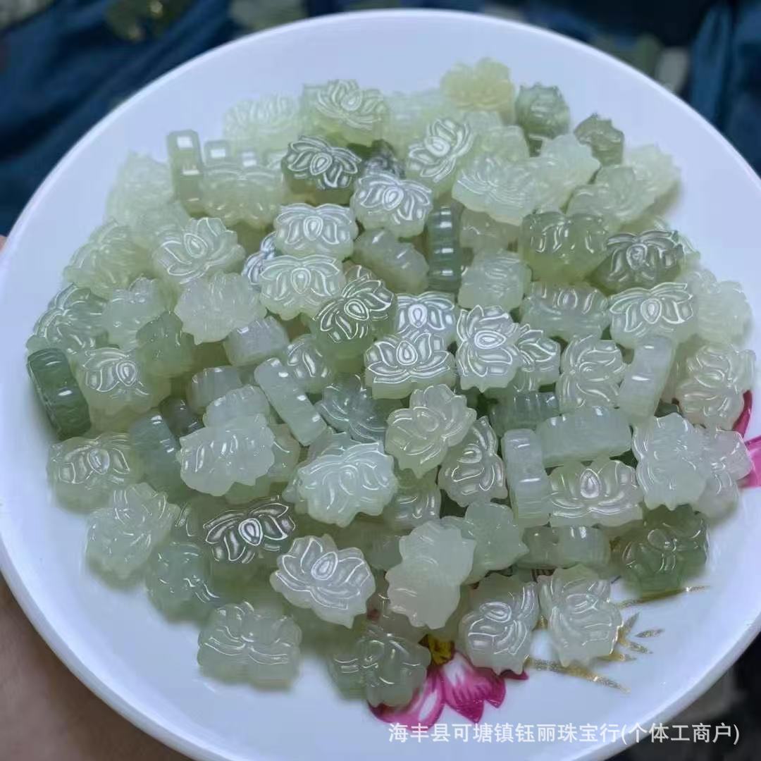 天然青海素材ホータン翡翠蓮彫刻ストレートホール蓮の座翡翠ブレスレット DIY アクセサリー繊細