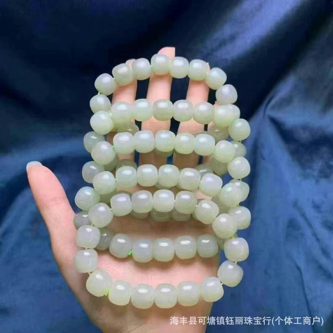 天然青海素材ホータン翡翠晴水オールドスタイルビーズブレスレット 11*12 ミリメートル繊細な油性翡翠ブレスレット diy アクセサリー