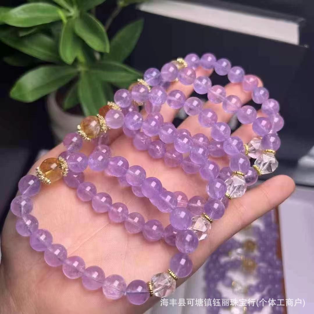 天然ラベンダーアメジストブレスレットDIYデザイン、イエロータワークリスタルホワイトクリスタルファセットクリスタル透明