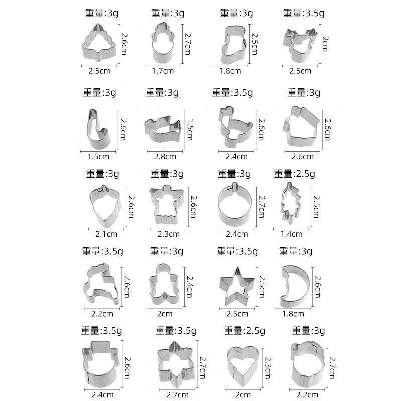 越境で人気のクリスマス用クッキー型20個セット ステンレス製クッキー焼き型 ミニフルーツカッター 在庫あり