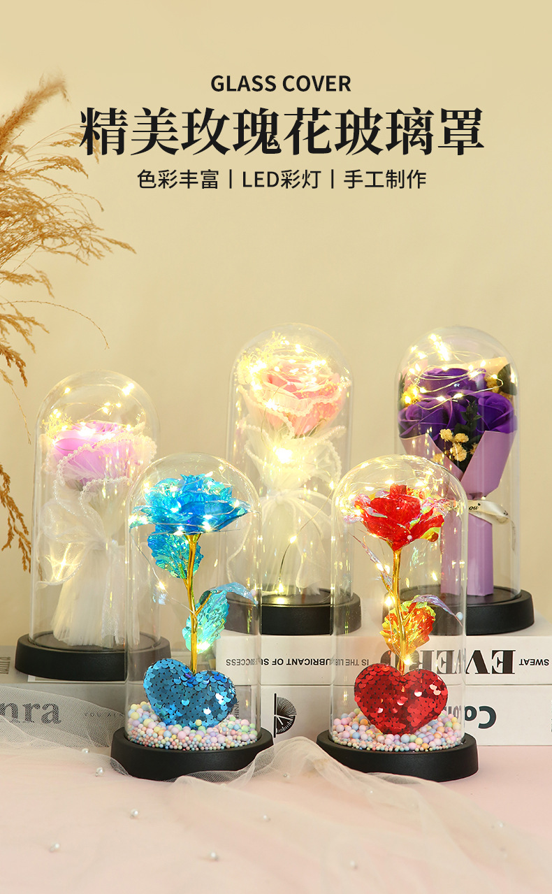 バレンタインデーのプレゼントは彼女に実用的なアイデア石鹸のバラのガラスカバーをプレゼントします。