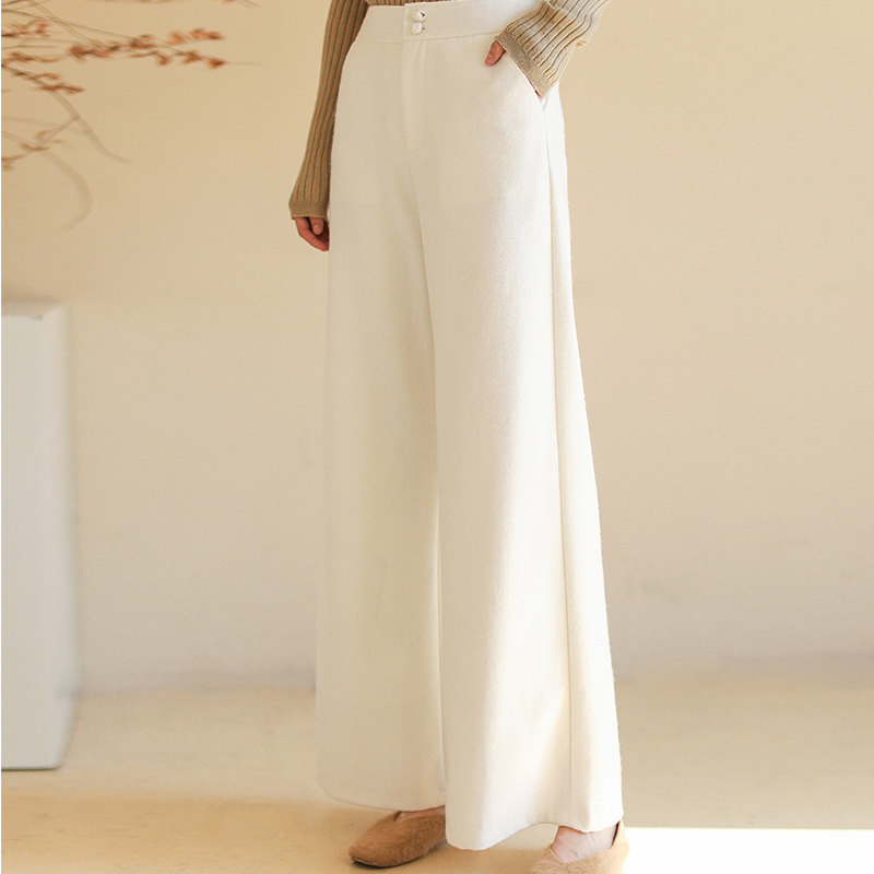 秋冬新作パンツ カジュアルで万能なロングパンツ 厚手ウールストレートパンツ スリムフィットワイドパンツ