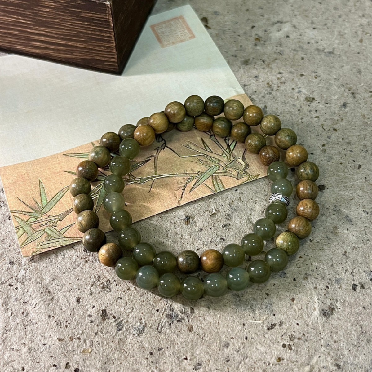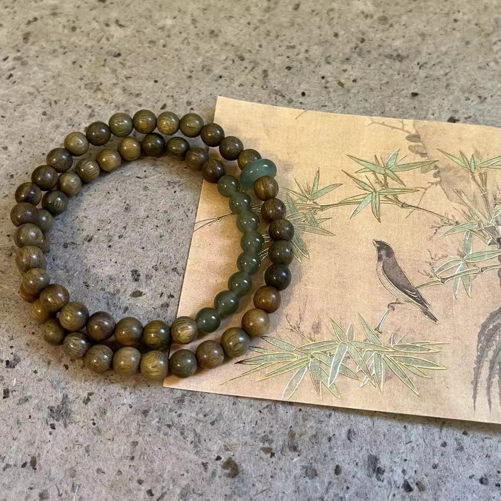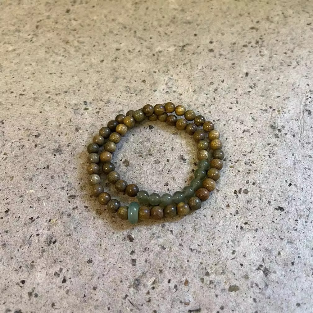 新中国式天然緑檀国風復古ステッチビーズブレスレット爆発手串民族風二重畳み込みアクセサリー