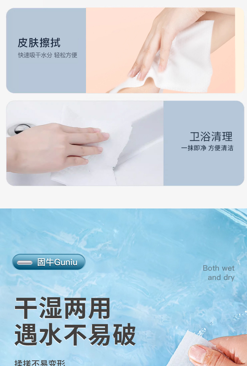 固牛干湿两用家用加大加厚大包现货批发悬挂式一次性150抽擦脚布