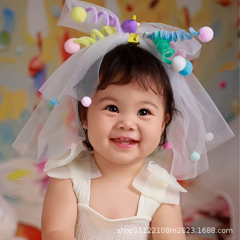 儿童公主扭扭棒头纱多巴胺宝宝生日写真女童可爱发夹拍照演出道具