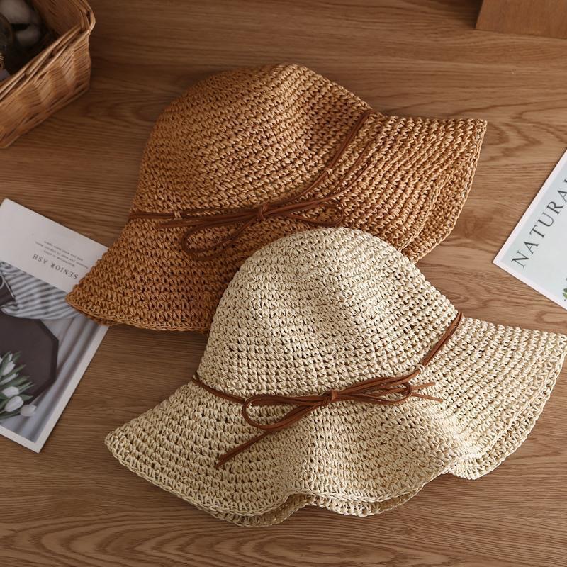 夏の日韓折り畳み可能な麦わら帽子手作り帽子屋外日よけ日焼け止め女性の大きな軒ビーチ漁師帽
