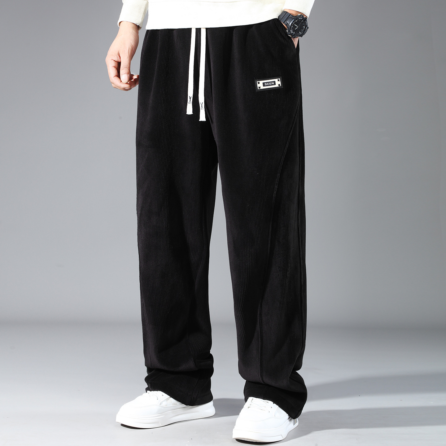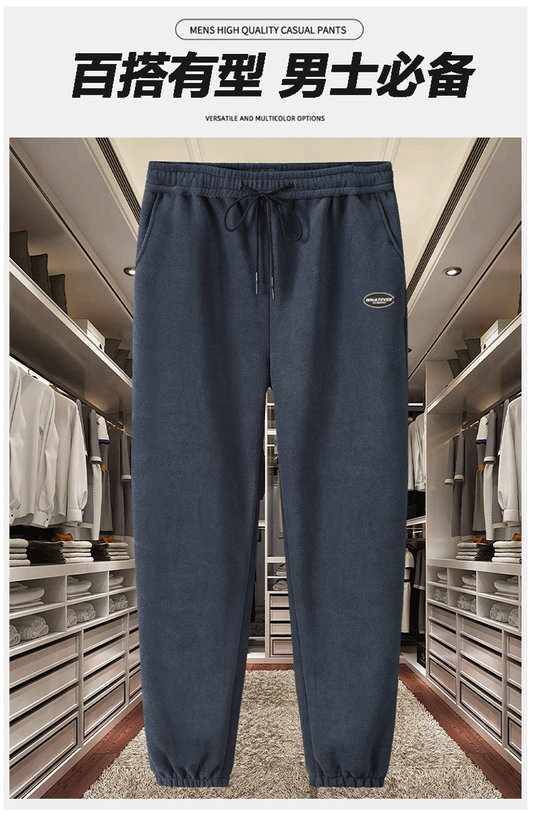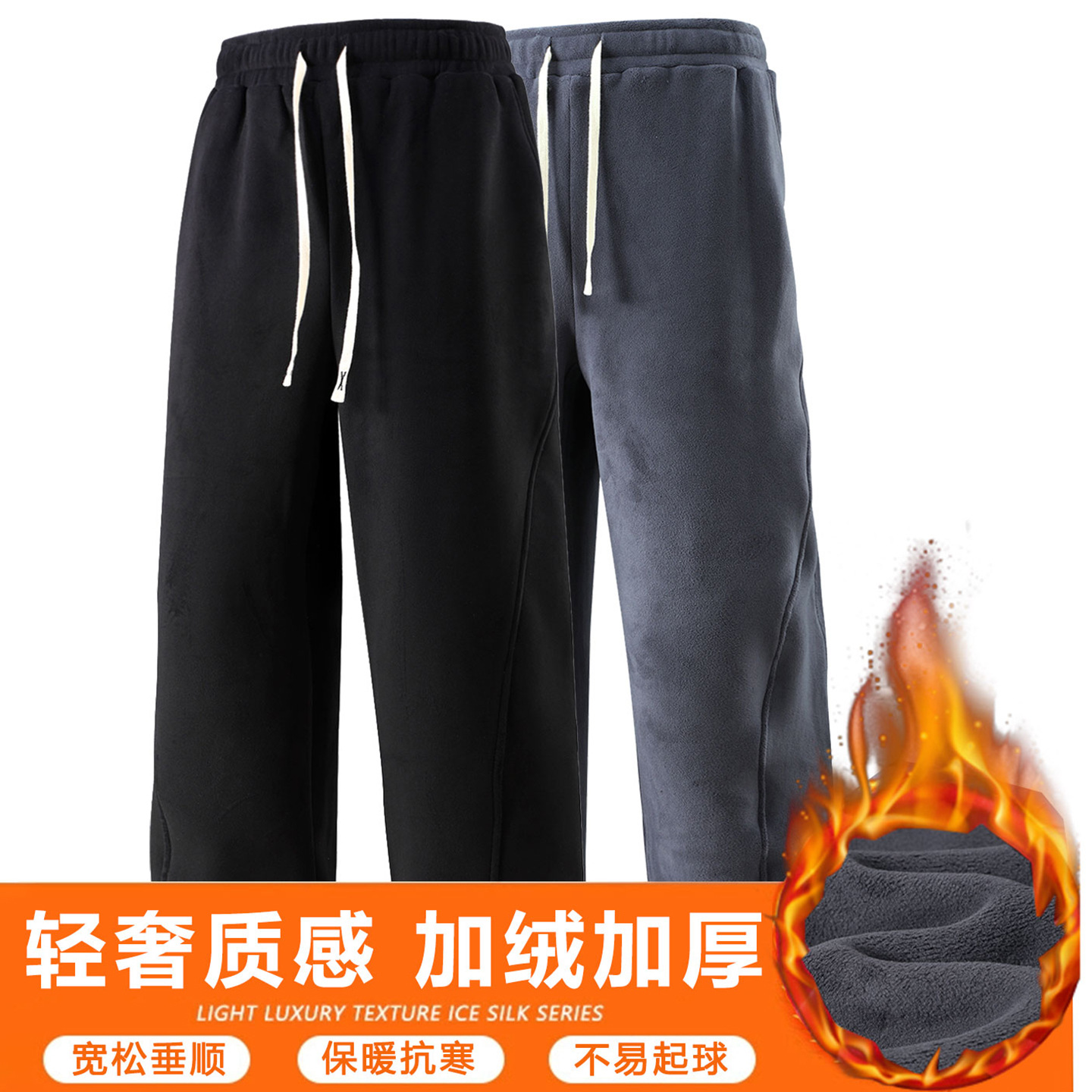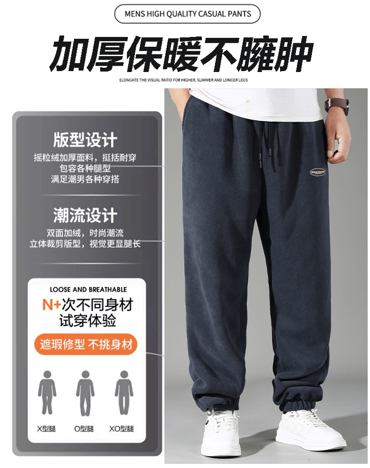 显瘦大码加绒休闲裤男秋冬款直筒超厚长裤加肥加大高腰深裆运动裤