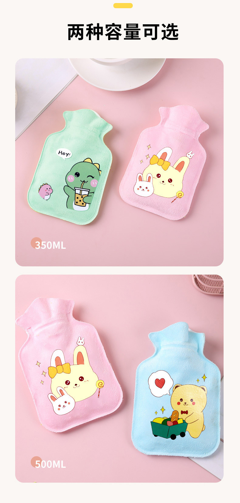 新款热水袋注水加厚防爆暖手宝暖脚暖宝宝可爱毛绒卡通热敷暖水袋