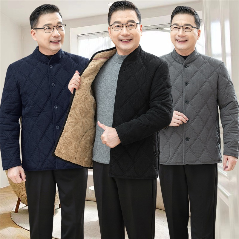 一件代发男士加绒加厚棉衣中老年人爸爸外穿棉袄冬季爷爷保暖棉服