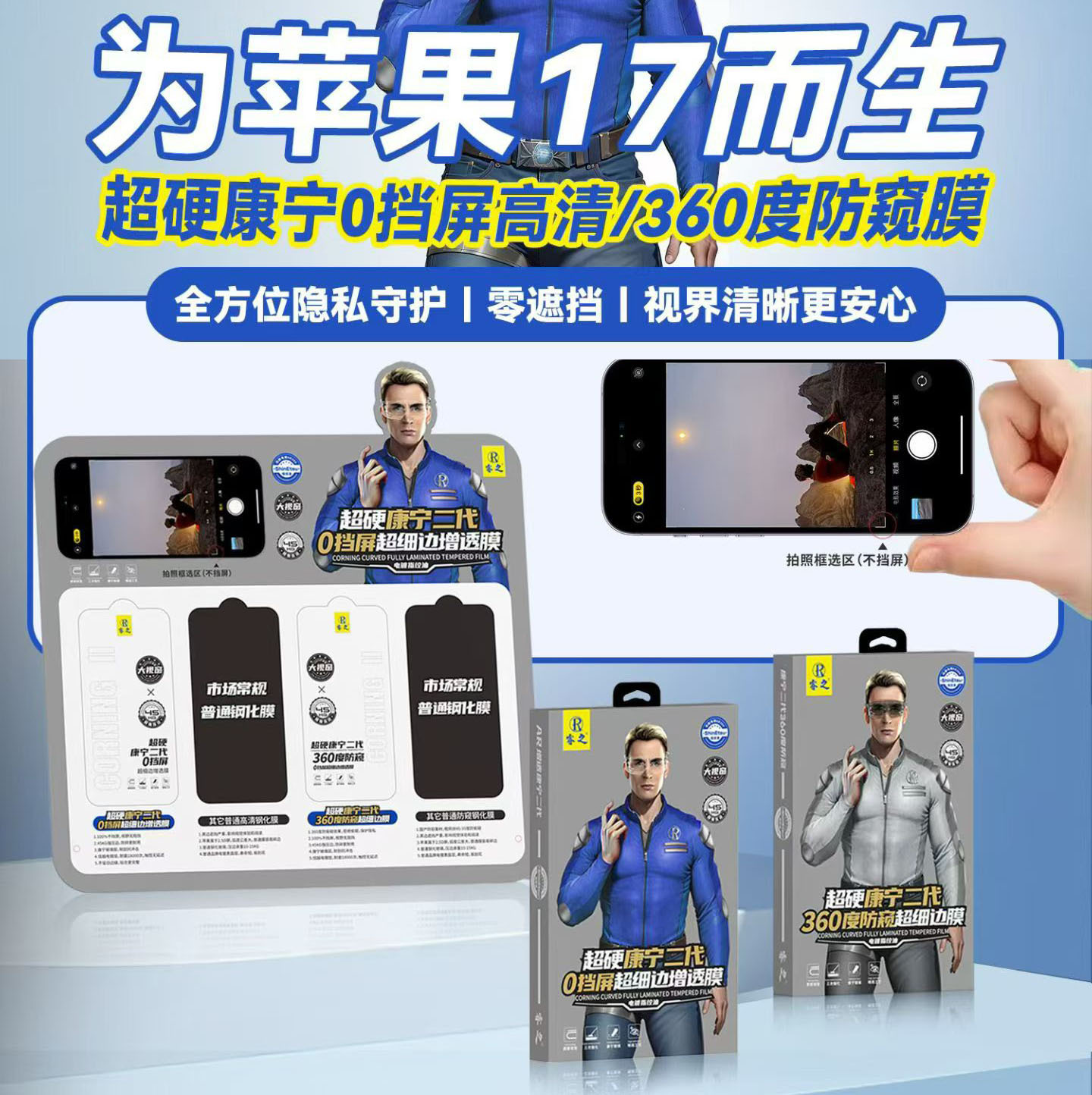 奥普登康宁二代超细边不档屏无白边17promax/17/17pro抗压360防窥