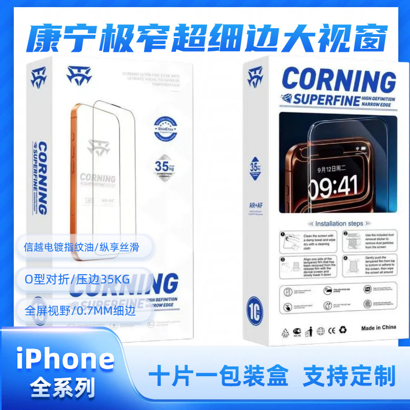 超细边康宁35KG压边钢化膜适用苹果17PROMAX手机膜电镀高清16PRO