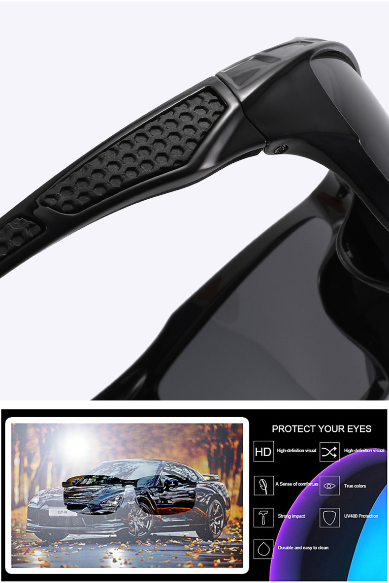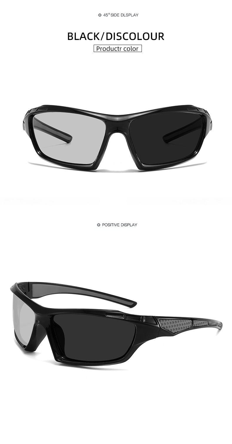 户外新款跨境男女时尚方框偏光太阳镜运动墨镜驾驶骑行变色夜视镜