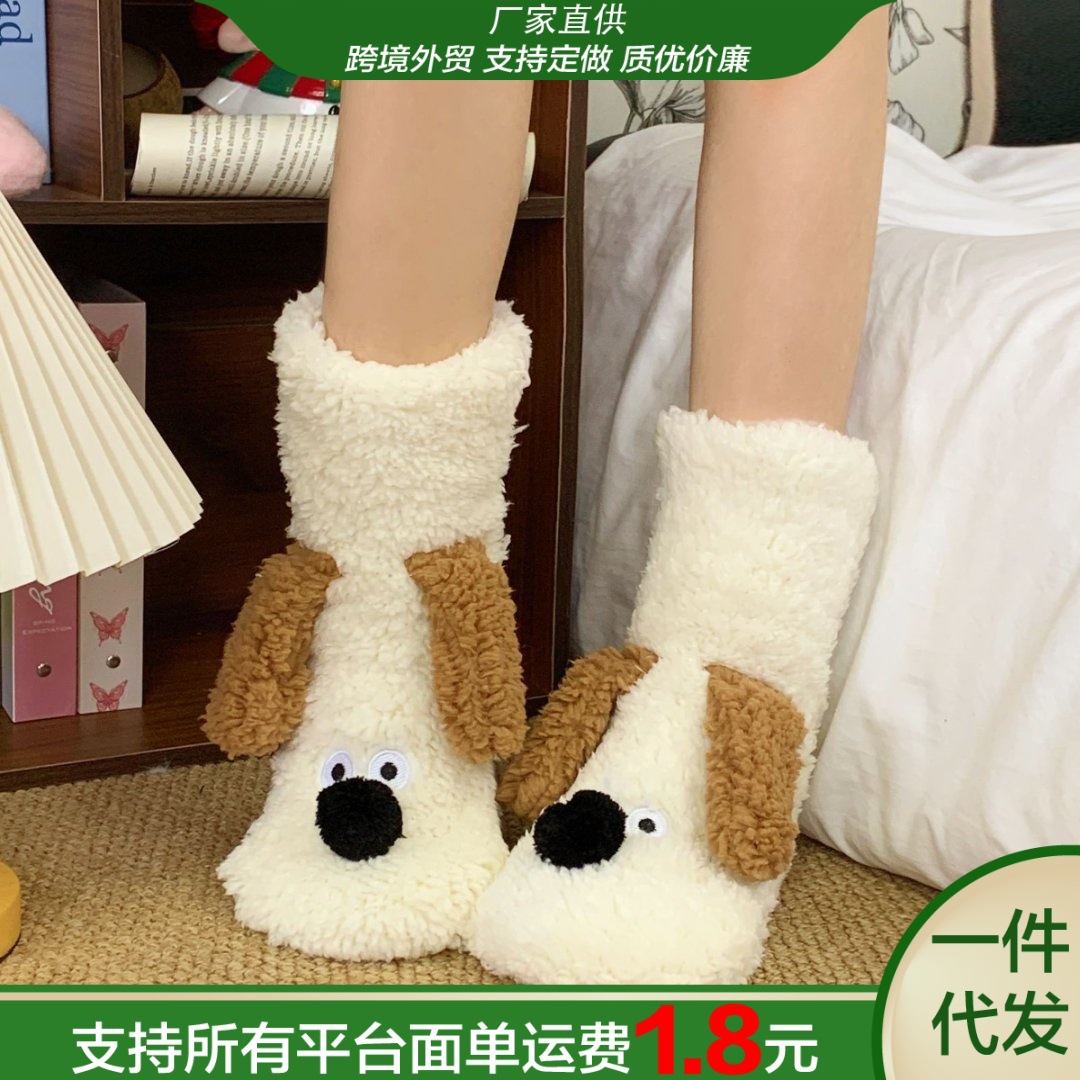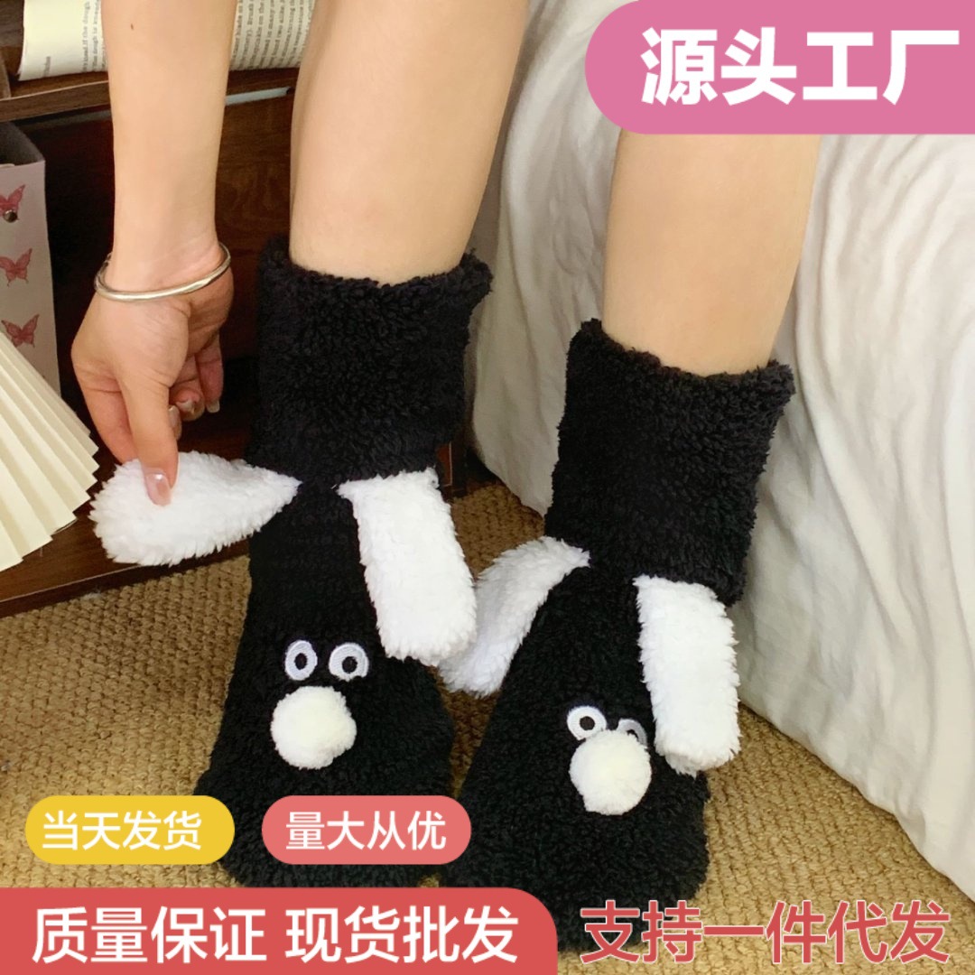 秋冬保暖加厚防滑加绒室内可爱新款地板卡通睡眠冬季袜子珊瑚居家