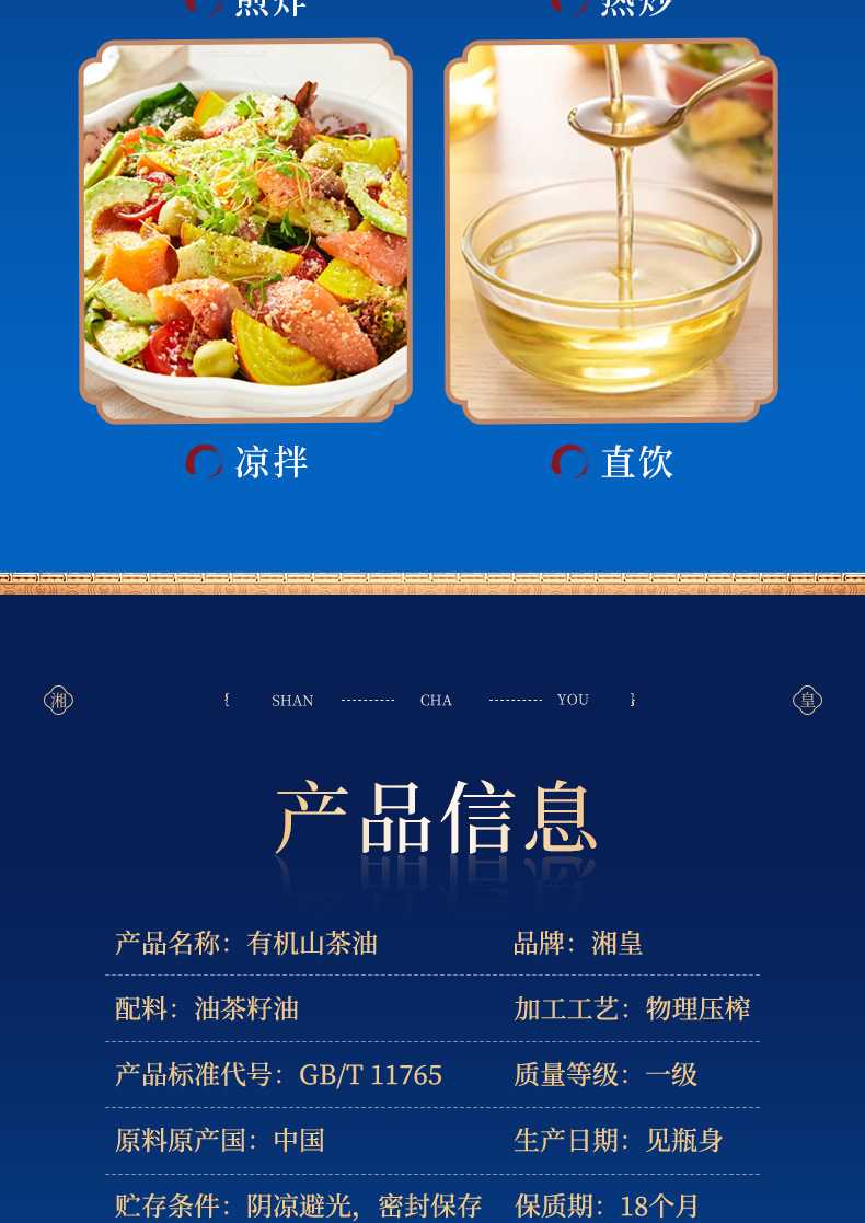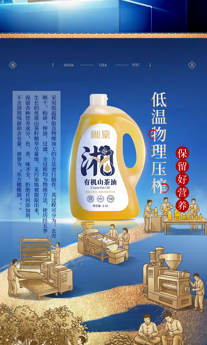 【湘皇】純ツバキ油シリーズ物理冷搾り茶油湖南特産茶樹油食用月子油