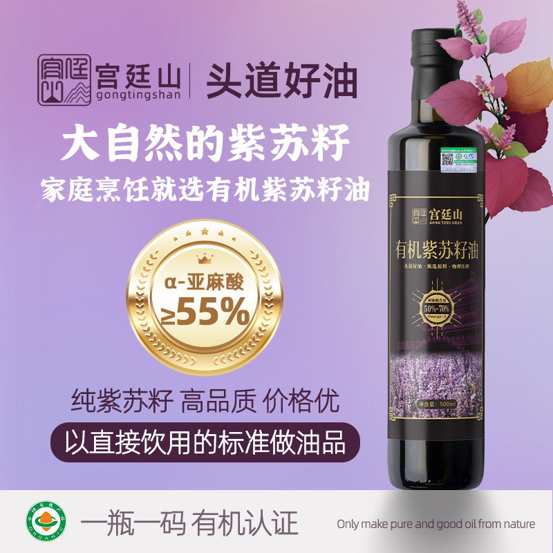 宫廷山有机紫苏籽油500ml纯苏子油压榨一级冷榨亚麻酸口服直饮