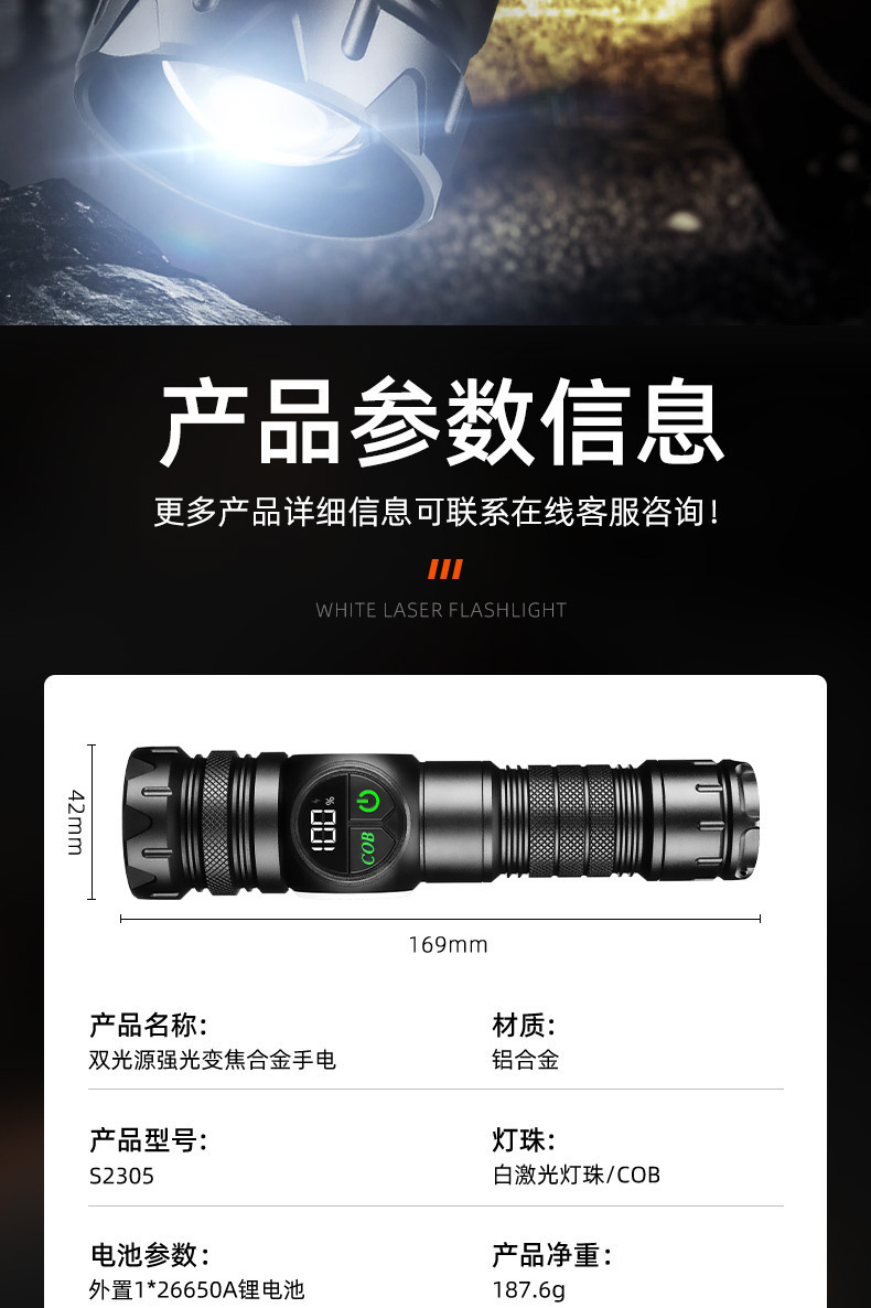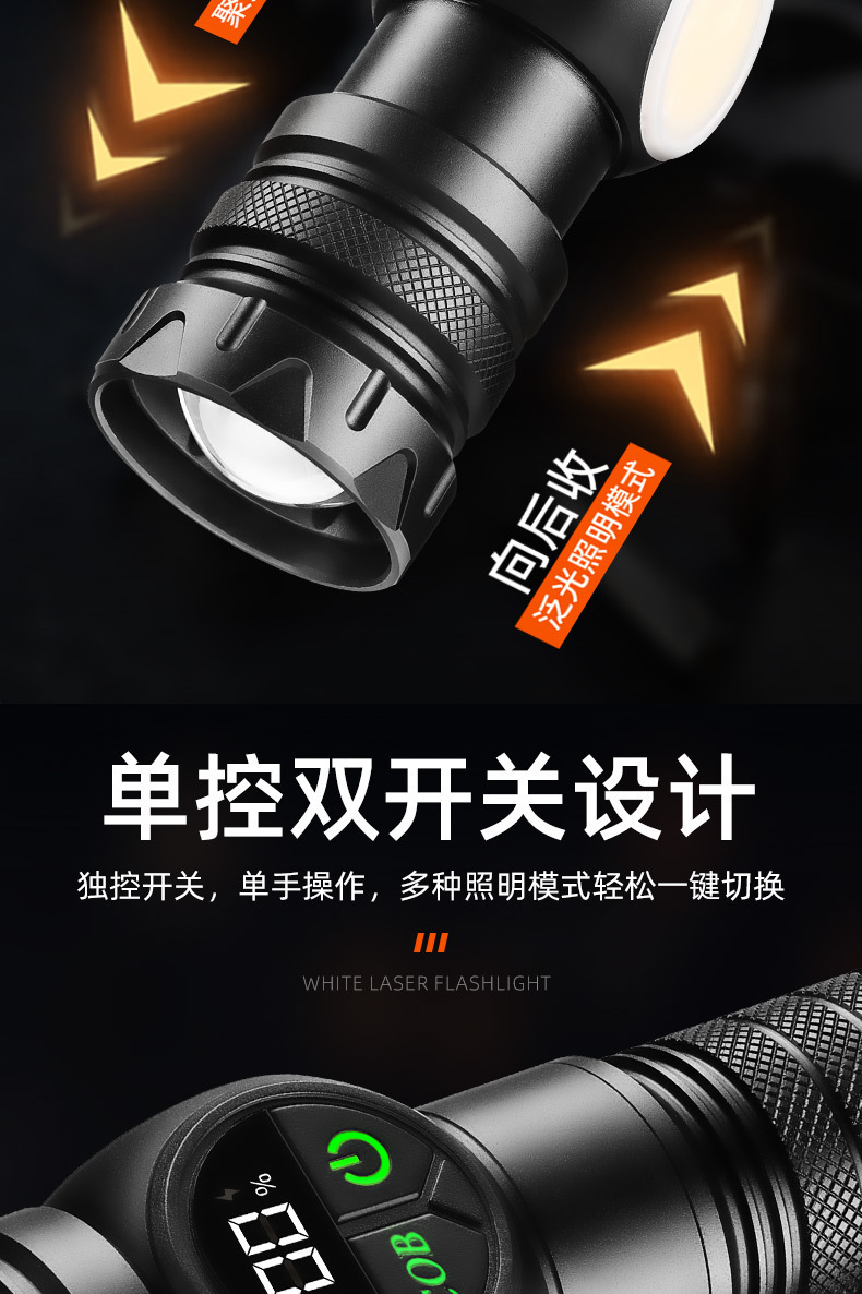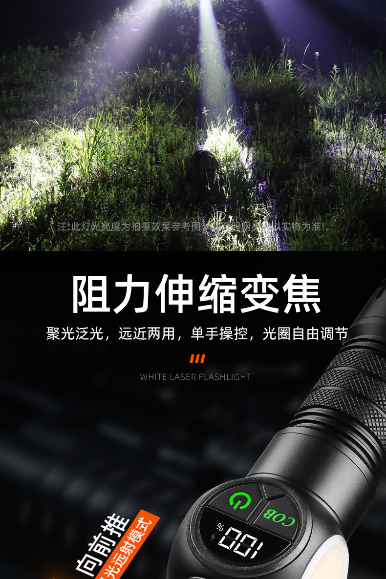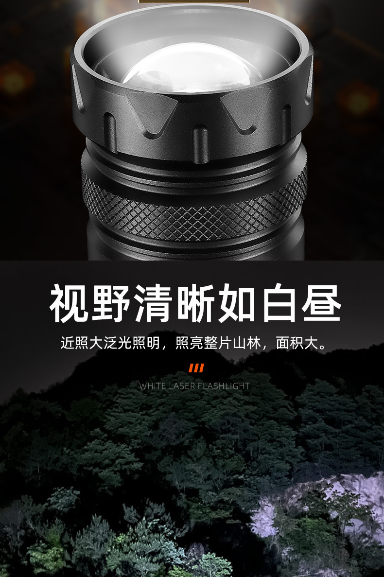 クロスボーダーホワイトレーザー懐中電灯ハイパワーアルミヘッド伸縮ズーム多機能屋外照明強力なライトデジタルディスプレイ懐中電灯