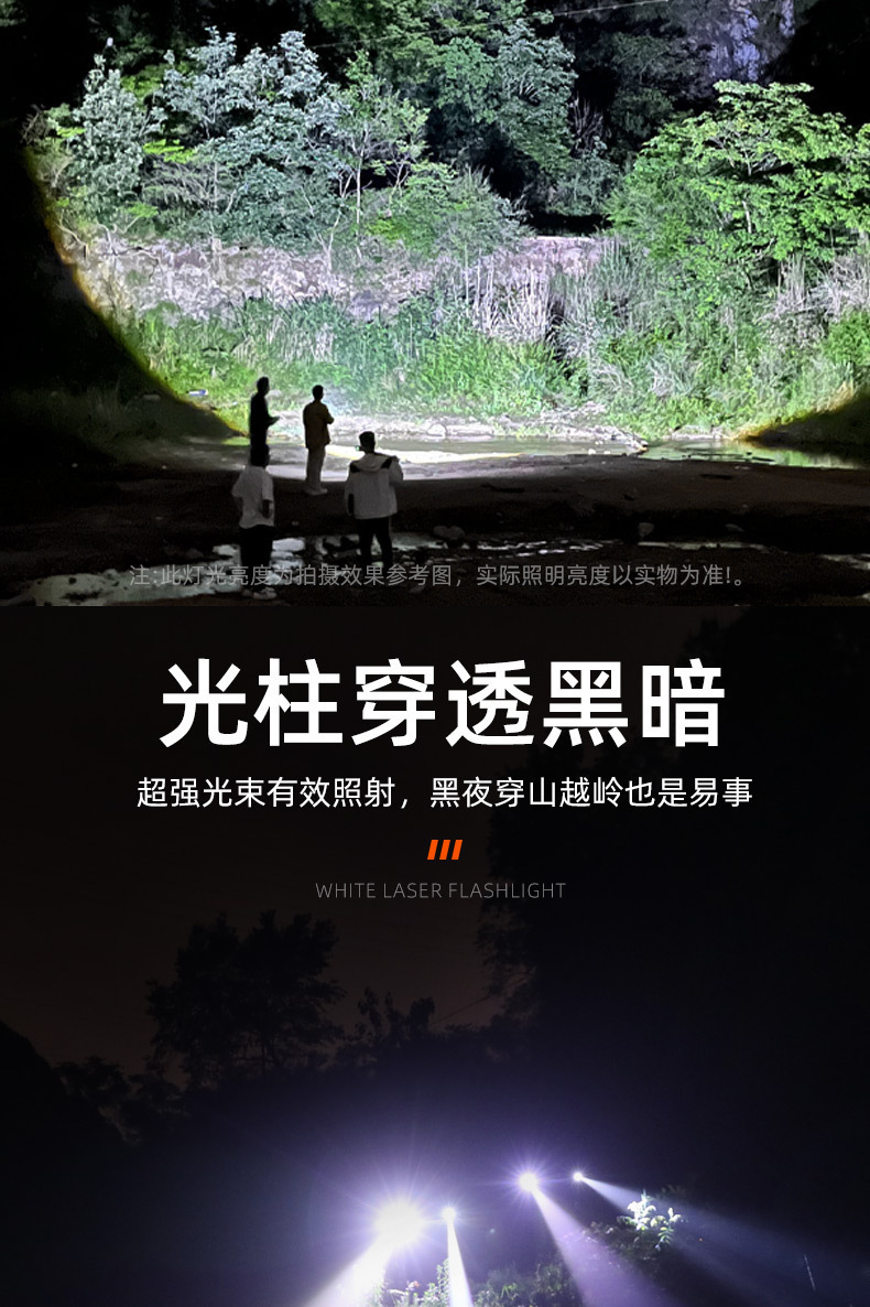 新しい LED ホワイトレーザー強力な光懐中電灯穂軸サイドライト内蔵リチウム懐中電灯屋外プラスチック充電式懐中電灯