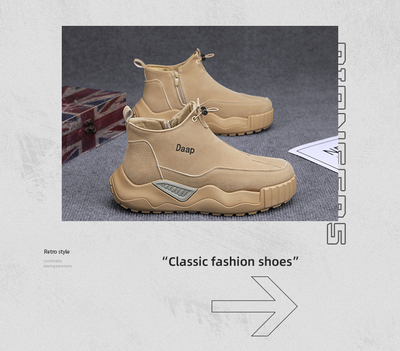 高組男靴秋の新型アウトドア徒歩耐摩耗性労働保護靴の厚い底が高くなりました。マーティン迷彩作戦工装靴です。