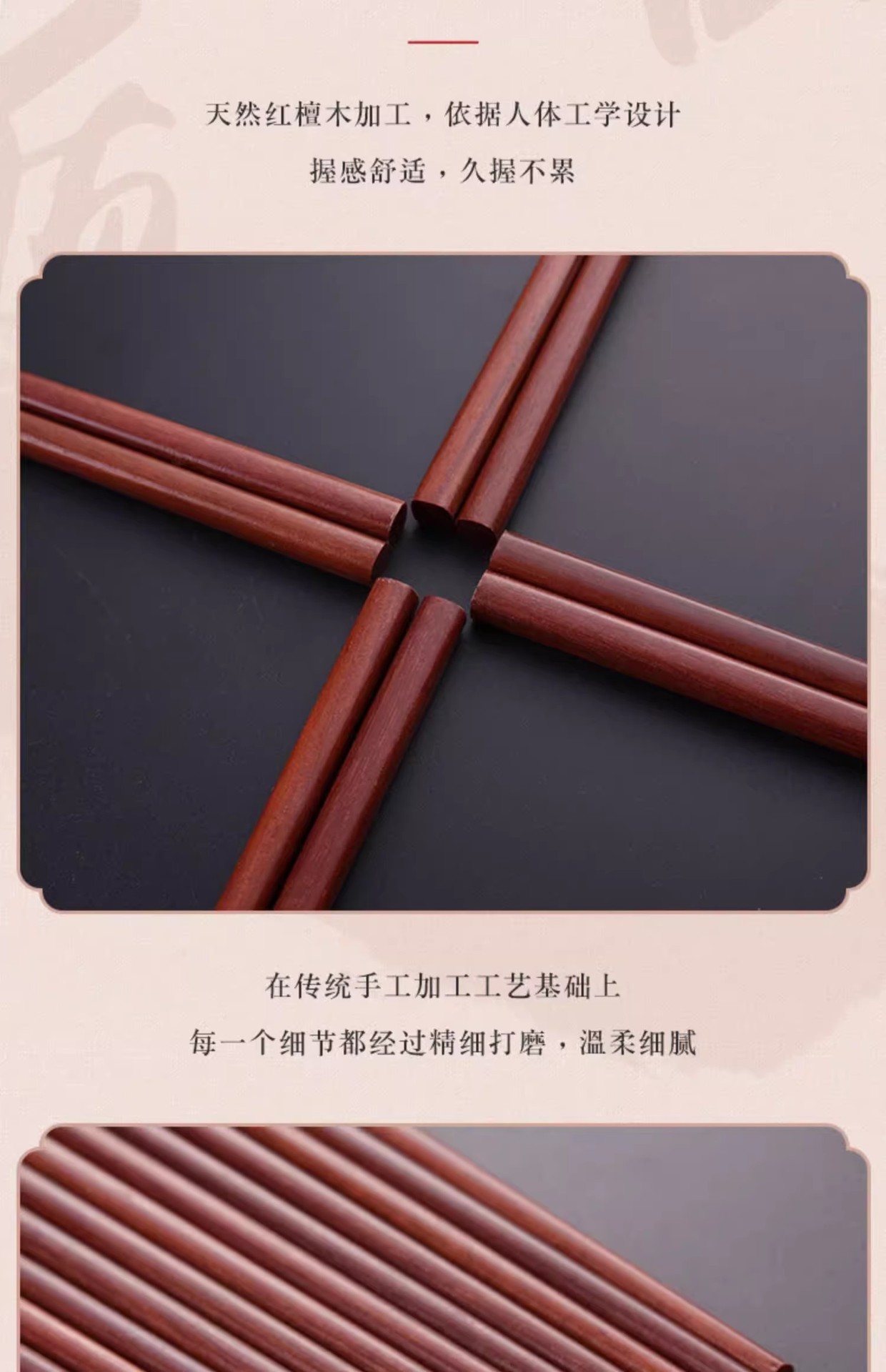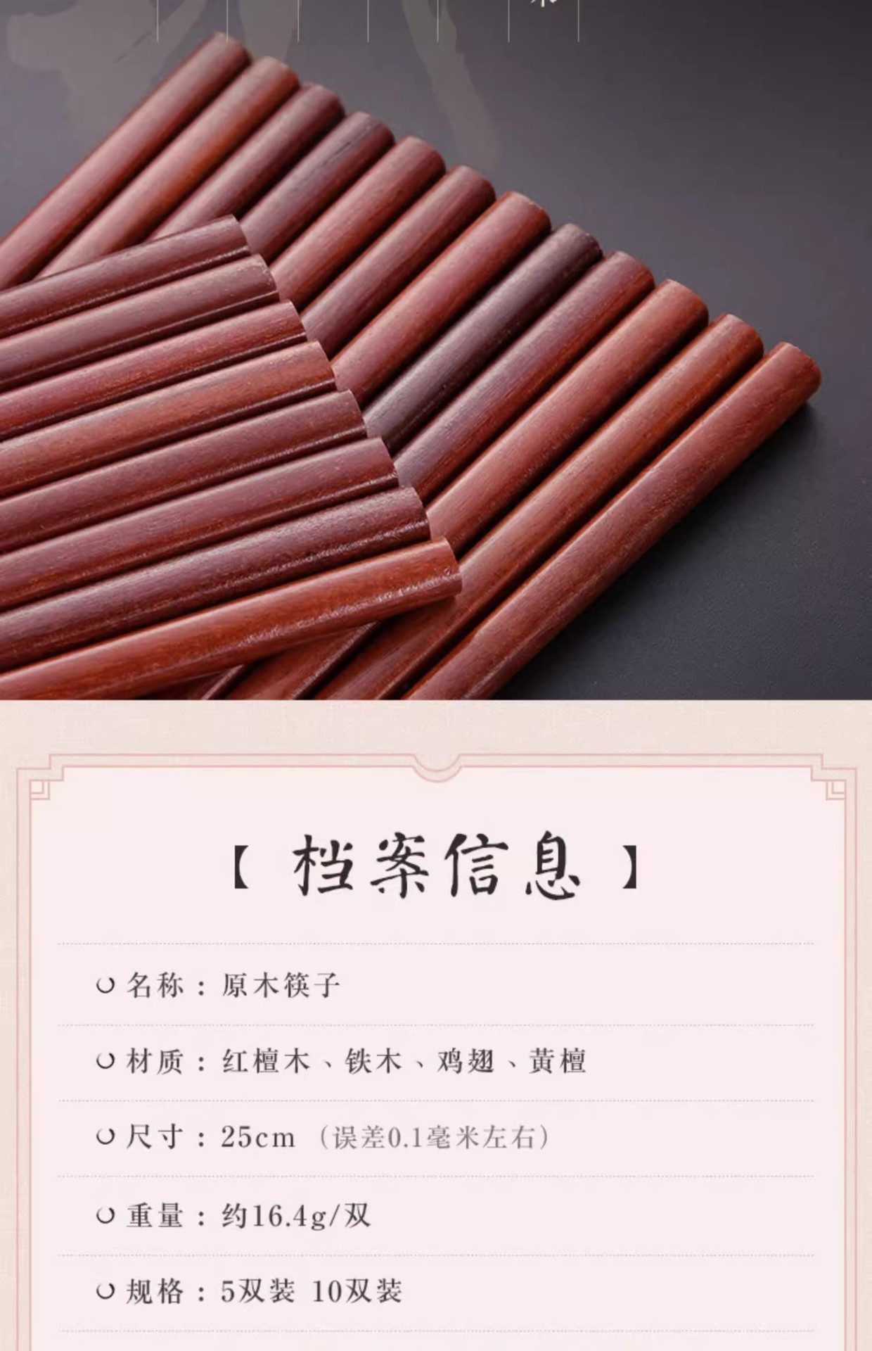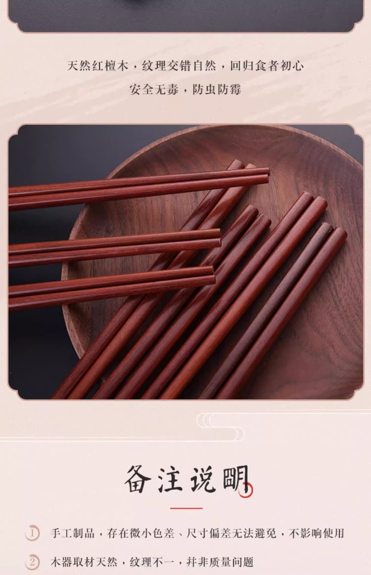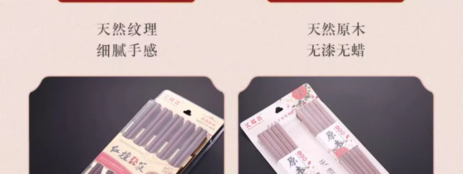 【好货严选】10双原木无漆无蜡实木筷红檀木鸡翅木筷子防滑原木